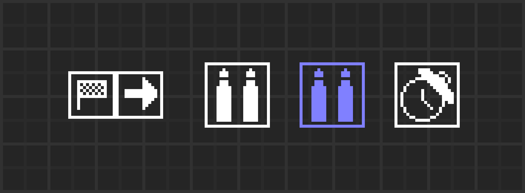从左到右:触发器(延迟)和触发器(销毁) 触发器(延迟)会在其延时结束时激活其子对象。你可以右键点击它,然后点击“时间延迟”来设置延迟。延迟单位始终为秒(0.5即半秒)。 触发器(销毁)会在其父对象被销毁时激活其子对象。遗憾的是,编辑器中并非所有对象都可以被销毁(严格来说是可以的,但这要到后面才会实现)。可被销毁的对象列表位于“Blips and Blops”部分。 指令 指令为浅蓝色,当其父对象(必须是触发器)被激活时,指令会执行相应命令。 编辑器中有两个指令:
