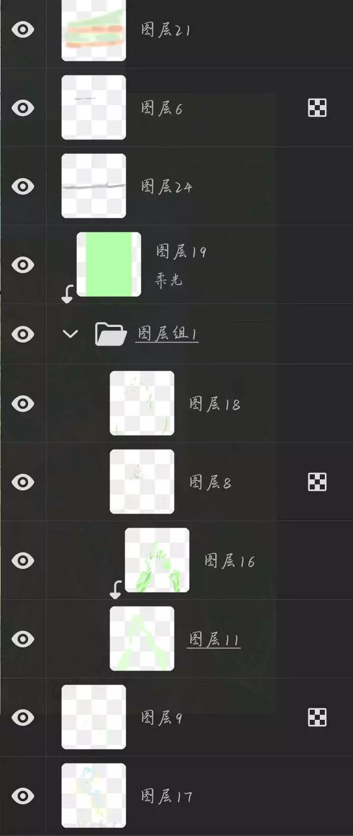 这是一篇无偿展示的儿童画创作,画面是一位手持蛋糕的绿发二次元少女,还展示了这幅画的创作图层,属于4月创作月榜相关内容。