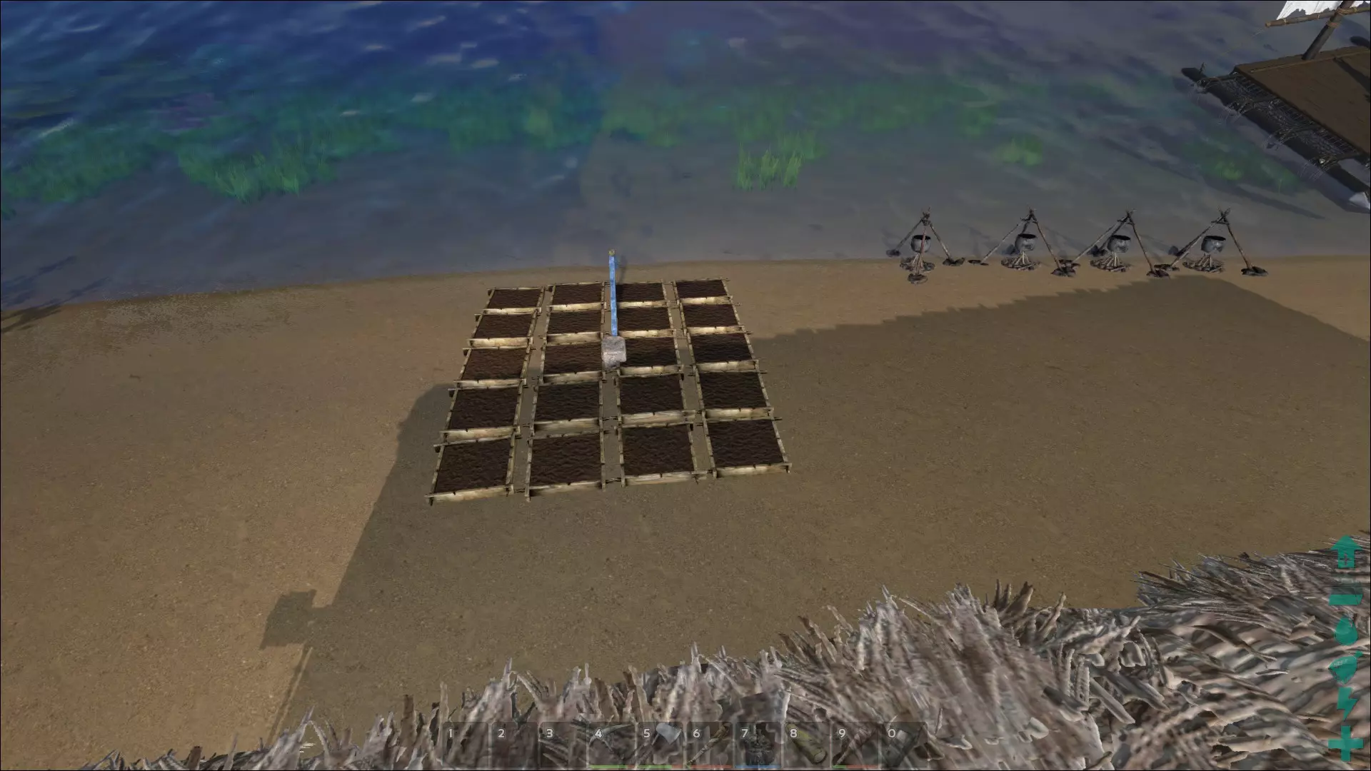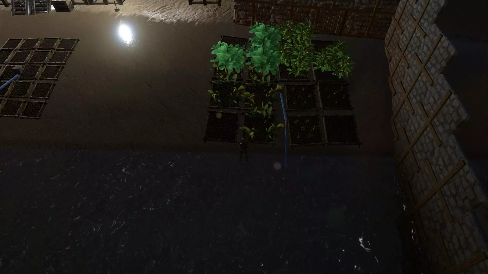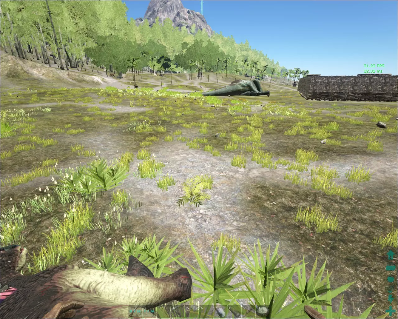上图展示的是白天洞穴内部的景象。到了晚上会更暗(我没开玩笑)。如果你觉得光线太亮难以忍受,可以打开控制台(默认按Tab键)并输入: r.BloomQuality 1 r.LightShafts 1 这样应该能有所改善。 更长久的解决办法是编辑ini文件。 游戏初期 当你醒来时,首先需要制作石镐。为此,你要捡起一块石头,然后击打树木,直到获得10份茅草和1份木材。收集足够的材料,为接下来制作三件物品(斧头、营火和长矛)做准备。在此过程中顺便采集浆果,你吃得越饱,抵御寒冷的能力就越强,至少我是这么发现的。当你达到2级时,我个人建议制作斧头和长矛,3级时制作营火。制作几根长矛(可堆叠),这是你的首个远程武器,在获得第一把弓之前,它是你拥有的最强大武器。此外,长矛/ pike是最重要的近战武器,它们能通过击退效果让敌人无法靠近。 印痕技能 游戏初期,你没有足够的印痕技能点来解锁所有想要的东西,所以优先解锁你需要的,而非想要的。作为单人玩家,建筑并非必需品,但不得不承认建造基地很有趣。在物品栏界面中,按住1键可以快速食用1号槽位中的物品。 食物与腐坏机制: 物品堆叠数量越少,腐坏速度越快。因此,若想让物品保存更久,应保持较大的堆叠数量。若想让肉类快速腐坏以制作麻醉剂,可在物品栏中将肉类拆分为单个堆叠。将物品堆叠从一个物品栏转移到另一个物品栏,会加速其腐坏进程。若要让肉类极快腐坏,可反复在不同物品栏间转移堆叠直至腐坏,不过这是一项繁琐的任务。物品在不同储物空间中的保质期倍数: - x1:个人背包和普通储物箱 - x4:喂食槽、恐龙背包 - x10:防腐箱 - x100:冰箱 这意味着物品在防腐箱中的保质期是个人背包的十倍。请注意查看漏洞部分,留意可能缩短食物保质期的腐败漏洞。 恐龙战利品 获取高于自身等级物品的最佳方式是击杀等级高于双脊龙的攻击性(移动较慢的)恐龙。我出生在“东部3区”,那里要么是沼泽地带,要么靠近沼泽。在低等级时,我会猎杀泰坦巨蟒和帝鳄。方法是向这些生物投掷长矛。有一次,我携带了8根长矛,而重量仍控制在100以内。就我个人而言,如果你对自己的操作不太自信,建议避开斯卡罗(Scaros),因为它们比泰坦巨蟒快得多,而且需要用很多长矛才能解决。选择泰坦巨蟒吧,2-3根长矛就能杀死它们,运气好的话还能获得一些不错的战利品。另外一点,要把它们引到离你的基地近一些、远离它们刷新区域的地方再攻击。你最不希望发生的就是还没解锁弹弓时,被不止一只攻击性生物围攻。如果你已经驯服了几只双脊龙,那太好了,当泰坦巨蟒的咬伤导致你视野变黑,或者因为你的(我的)疏忽而陷入危险时,它们会救你一命。在沼泽水域要小心,你听不到它们的声音,有时也看不到它们。我曾经被大约3-5只泰坦巨蟒同时攻击,而杀死我的并非它们本身,情况还要更糟。我在齐膝深的沼泽水里被击晕后溺水而死的次数,比被泰坦巨蟒直接杀死的次数还要多。 初期可以从掉落物中获得的物品有盔甲、弓、镐,运气好的话还能得到金属斧(似乎很稀有)。 关于耐久度和伤害:注意恐龙掉落的物品通常比你自己制作的品质更好。 升级:快速升级和消磨时间的最快方法之一是在建造或制作麻醉剂的时候。制作麻醉剂,你会发现自己升级很快。当你建造围栏或大型基地时,也会升级。制作物品是最简单且最可靠的升级方式。这部分内容比较简短,我实在不知道还能补充什么。时间的流逝也会让你升级……所有活动都能让你升级,但最快的方法是通过制作物品和建立你的药物帝国。 指南针、导航与简易床 指南针是非常实用的工具。没有它,我可能早就迷路了。要学会如何使用它。始终朝着指南针上“N”所指的方向前进,这样当你向前看时,它就会一直正对着前方。 若你想前往某个方向,蓝色箭头应指向的位置如下: - 北方:蓝色箭头指向N - 南方:蓝色箭头指向S - 西方:蓝色箭头指向E - 东方:蓝色箭头指向W - 西北方:蓝色箭头指向N和E之间 ... 我在40多级时才发现,你可以在简易床之间进行快速旅行(此时背包需为空),而且如果你建造了一张或多张简易床,就能获取你所在位置的精确坐标。它还能让你查看完整地图。真是没想到,我花了好长时间试图确定自己的位置,结果只需点击一下床就能搞定。 可以考虑放置路标来指示你的位置,或者下一个路标或基地的方向。我不会在路标上浪费印痕技能点,但如果你运气好,可能会从信标中获得一些路标,甚至是路标的蓝图(我两种都得到过)。 farming 当你在10级解锁小型种植箱、灌溉水龙头和进水口后,就可以建造你的第一批农场了。每个灌溉水龙头最多可以为20个小型种植箱供水。中型种植箱则可以供16个。你需要它们来种植蔬菜。 至于粪便,从早期开始就要收集小型粪便,并把它们存放在你驯服的恐龙身上。这些粪便能保存一段时间,等你制作好堆肥箱后,再把它们放进去。100份茅草和6份(+1份备用)粪便可以制作肥料。如果你比我运气好,你会找到并驯服一只屎壳郎。找到屎壳郎已经成为我的首要任务,但我运气不佳,无论是水下还是陆地上的洞穴都没找到。 另一个强烈推荐的选择是渐新象。抓一只渐新象,给它喂食兴奋剂,然后观察它排便。如果你没有渐新象,退而求其次的选择是渡渡鸟。似乎也可以给渡渡鸟喂食兴奋剂让它们腹泻,但要注意它们的食物值,不要让动物饿死。 5x5的小型种植箱