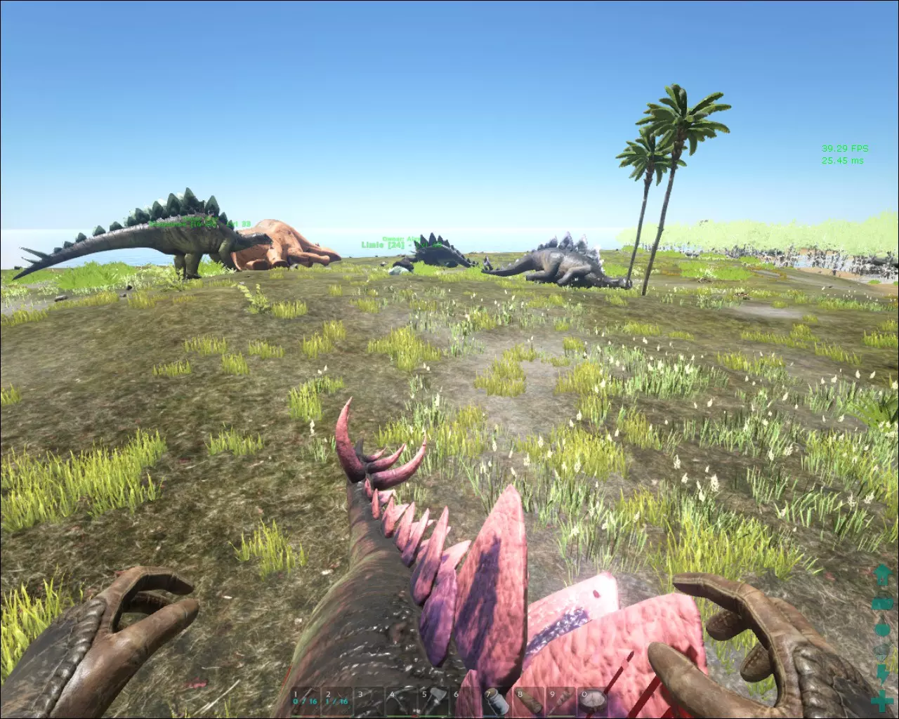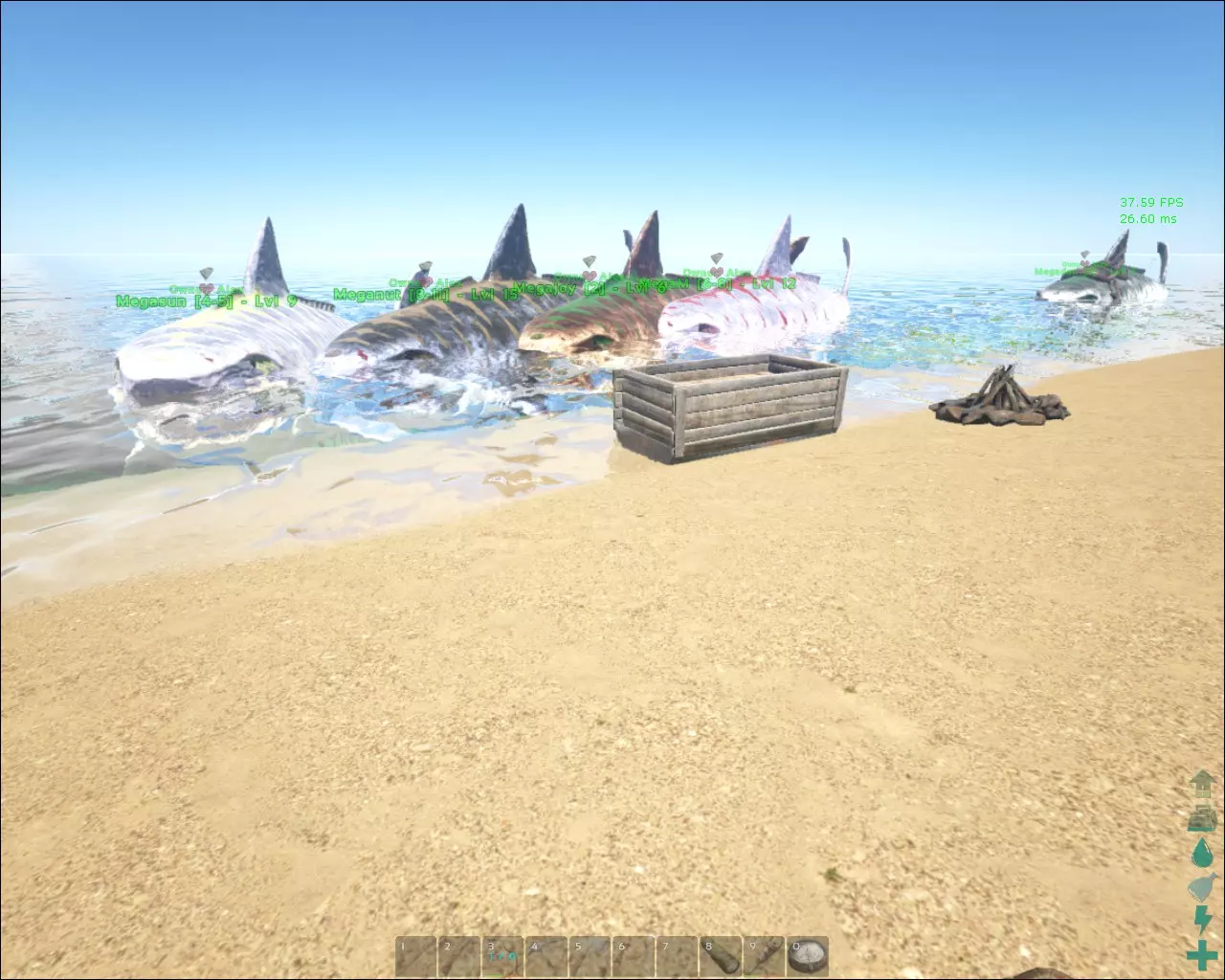 不知为何,雄性巨齿鲨似乎总是独自待着,盯着前方的鱼鳍。 不用鞍的方法有点 tricky,我只会尝试用几只碳龟来做。基本上,你只需让碳龟攻击其中一只巨齿鲨,然后将它们设为被动状态并召回。重复此操作,直到它们把巨齿鲨引到浅水区。你或许可以用魔鬼蛙来尝试,它们不会主动攻击,但确实会围着巨齿鲨转圈游。 美颌龙没什么太难的。只要准备好正确的饲料就行,制作起来很简单。接近它时,要么蹲下慢慢移动,要么趁它背对着你时跑过去。饲料应放在0号槽位,不要像我一样按0键吃掉饲料,当出现提示时只需按“E”键。喂食后千万不要移动,直到它背对着你,这时要让它保持在你的范围内。如果它开始转向你,就停下来。这样它逃跑的可能性会小一些。如果它跑了,要一直看着它,等它平静下来。 如果到了第二次喂食的时间,它却还在看着你,那就蹲着慢慢向前移动。 巨猿我从没试过驯服,除非我能弄到它们的蛋。到目前为止,我只得到了两颗泰坦巨蟒蛋。而且它们很暴躁,离太近就会攻击你。我发誓我真的没碰那只丑猩猩。一个鞍甲,其护甲值为31.2,而非正常的25。 你应该避免的漏洞(腐烂漏洞) 随着我遇到更多漏洞(并且记得添加),我会补充更多内容。 腐烂漏洞:当你将一叠物品从自己的物品栏拖到另一个物品栏,然后再拖回自己的物品栏时,物品的剩余腐烂时间会大幅减少。这是一个漏洞。如果不小心操作,像冰箱、防腐箱和恐龙物品栏这类容器,非但不能延长物品的保存时间,反而可能缩短物品的寿命。 这个漏洞在此处有讨论。避免该漏洞的方法是,当物品在另一个物品栏中时,你需要按下“从物品栏中全部取出”。这是唯一的方法。 南方巨兽龙派对:存在一个漏洞,会导致地图上充满南方巨兽龙和过多的生物。此问题发生在单人模式中。虽然有点有趣但也很致命。要摆脱它们,你需要移除所有野生恐龙,这样它们才会重新生成。 在控制台输入“DestroyWildDinos” 英伟达驱动重置解决方案 在安全模式下使用DDU(显示驱动卸载工具)卸载当前驱动 安装英伟达驱动355.98版本 没有甲虫和空旷的洞穴 这是一个我尚未解决的漏洞。建议的步骤是在控制台使用“DestroyWildDinos”命令,但对我不起作用。窃蛋龙:我用渡渡鸟蛋驯服了一只等级很低的窃蛋龙。这比尝试获取它偏爱的稀有蛋要简单。 - 兽皮盔甲 - 焦辣椒(我带了大约一打的量,足够用几天) - 大量食物,或者确保能在那里制作食物 - 立式火把和火花粉 立式火把加火花粉是产生热量最高效的方式。立式火把中每块火花粉可持续燃烧约13分钟,并提供+100的抗寒保护。除了固定式电器外,没有什么能比得上它。夜晚你需要3-4个火把,通常每个火把用1-2块火花粉就能撑过整个晚上。在白天活动时,你可以使用聚焦辣椒,不过偶尔在天气变得非常恶劣时,你可能需要手持火把,甚至更糟的情况下需要立式火把。但这些都是你能够应对的。 北方平原与西部平原 第一条,也是推荐的路径,是从北方平原进入;第二条是从西部平原进入。北方平原入口处有许多被浅水分隔的小陆地,而且在北部海岸线上,你很可能会发现猛犸象和狼。西部海岸线有大量的浮冰和深水区,就我个人而言,从那条路线我没有看到很多(任何)猛犸象。当然,大多数猛犸象都在陆地深处,但我们为了安全和便于航行,尽量靠近海岸线。 此外,北方洞穴(NC)里布满了巨石。我从陆路进去时,一开始准备不足,还遇上了夜间的恶劣天气,即便我吃了焦辣椒也无济于事。幸运的是,那些巨石让我得以制作研磨器,还能采集燧石和石头。记住,用镐采集燧石,用斧采集石头。 往返飞行:这是我最初使用的方法,当时我没有焦辣椒(这是个错误)。我用了一只提升了负重属性的翼龙。你要在清晨进去,在天黑前离开,否则会被恶劣天气困住。现在获取兽皮的最佳方法是找到一个有岩架和悬崖的区域,悬崖下是浅水区,但需要游泳才能到达,且没有容易爬上来的路。然后你吸引一些狼的仇恨,在悬崖上空盘旋,它们会试图跳崖攻击你(愚蠢的AI)。落在其中一个岩架上用弓射杀它们,跳进水里获取兽皮。如果你不知道要找什么样的地方,这样的地点可能很难找到。另一种方法是把它们引到水里,然后用弩攻击它们。恐狼在水中的速度非常慢。北部平原附近的北部海岸线是做这件事的最佳地点,因为那里有许多不错的非积雪区域,恐狼在那里游荡,而且那里有浅水区和陆地。这个区域寒冷且容易被发现,偶尔你甚至能看到一只【企鹅】。 如果你有【阿根廷巨鹰】,那么你可以猎杀【恐狼】并把它们带到你的屠宰场。 海陆并进:【无齿翼龙】的问题在于负重。你带不了多少东西。我只能携带不到200张兽皮,而制作一套【毛皮盔甲】需要300多张兽皮。第二种方法是我更喜欢的,那就是骑着【巨齿鲨】从海洋出发。我同样推荐【北部海岸线】。我带了六只,加上我骑的那只。你可以考虑给它们都装上鞍,以获得额外的护甲保护,因为恐狼真的很凶猛。有巨石的区域,你很可能会在那里发现几头猛犸象。那是一个相对安全的驯养老象的地方,因为该区域更为隐蔽。 凯瑞科(Kairuku)大量分布在大陆板块悬崖之后的浮冰上。要到达那里,你可以选择从悬崖跳下(不推荐)、飞过去,或者从海路前往。我选择的是海路。在那里,你会发现大量的凯瑞科,同时这些区域也可以采集水晶和石油。偶尔会有恐狼从悬崖上跳
