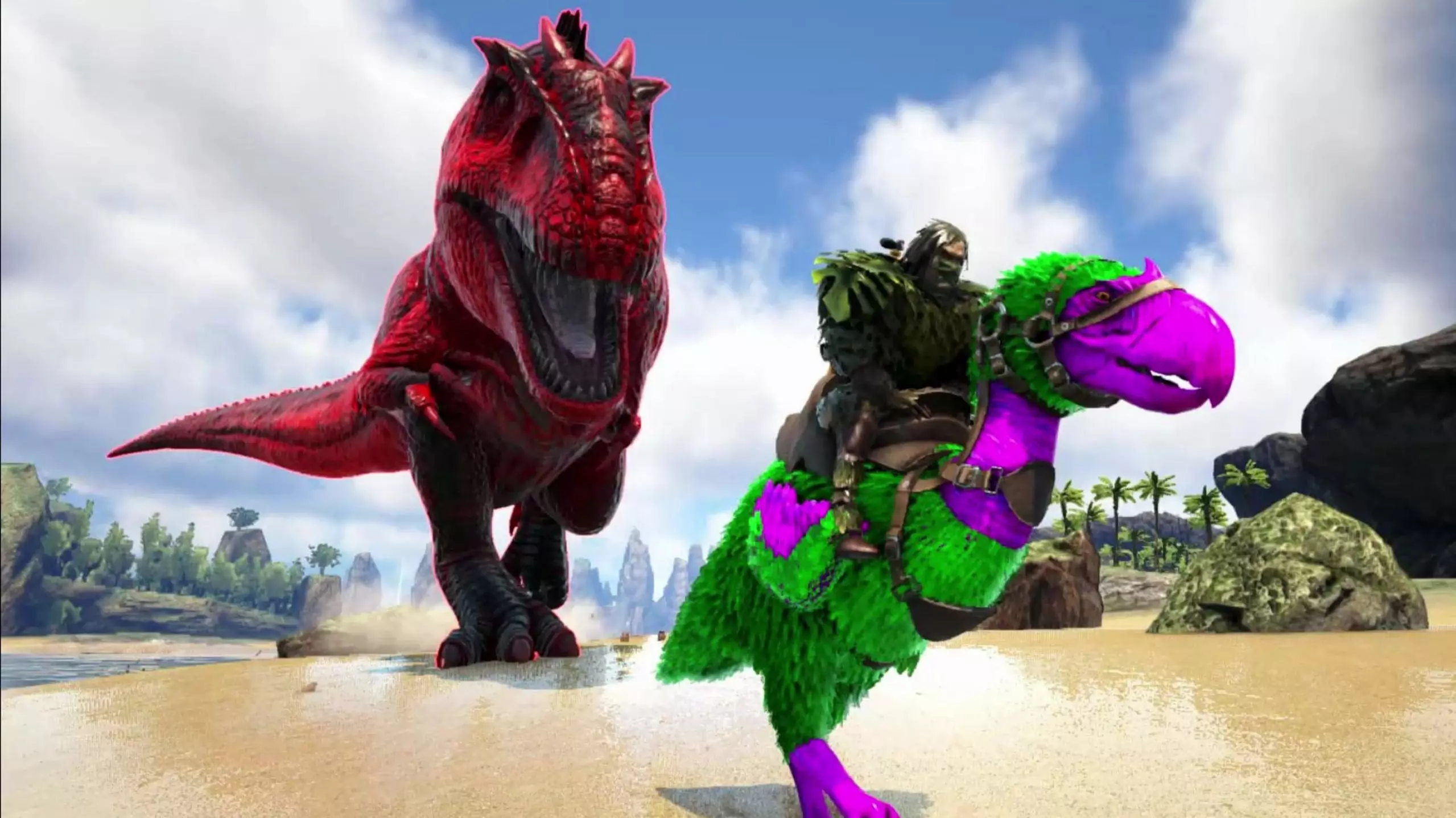 渐新象:当你拥有农场后,可以驯服它来获取粪便。给它喂食兴奋剂能让它排便。 副栉龙:堪称行走的肉库,一次驯服多只难度较大,但为了制作迅猛龙蛋饲料(进而驯服猛犸象),它是必备的。不过,你也可以像我一样,用优质生肉来驯服迅猛龙。 猛犸象:出色的木材收集者,同时拥有较高的生命值和负重能力。 剑齿虎:单是为了它收集兽皮的能力,就值得去驯服它。它是很棒的皮革收集者,但作为主要坐骑,我还是更喜欢牛龙,但随着等级提升,牛龙较低的负重会成为问题。到那时你就会转而使用阿根廷巨鹰以及更好的坐骑了。 大角鹿是速度极快的生物,负重也不错。我主要驯服一只来在基地区域快速移动,并且可以不用担心地携带物品。我不会将它用于任何形式的战斗。它很难捕捉,你需要让它被困在巨石或树木之间。 牛龙是必驯生物,因为它在收集优质生肉方面与霸王龙和棘龙不相上下。低等级的牛龙相当容易驯服,用弩箭射中身体2-4下即可。我会射它们的头部,但根据网上的资料,比如Patchy,牛龙的头部比较坚硬,你需要射它们的身体。我不太喜欢痒蜥,我更喜欢我的牛龙,但这些生物相当容易驯服。你需要渡渡鸟蛋饲料。如果你在海岸线附近看到一只,只要走到足够深的地方让它能够到你,它就会向你游过来。如果你需要潜得更深,我的建议是使用牛龙,因为它们速度更快,但在我尝试过的所有情况下,我都是在岸边浅水区驯服它们的,没有使用牛龙或其他任何东西。 三角龙我觉得它太慢了,真的不值得费力去驯服。不过,你需要它的蛋来制作帝鳄的饲料。 难以驯服的恐龙指南 似鸡龙在低等级时,捕捉似鸡龙很困难,因为你不一定总能获得优质生肉,而这是驯服它们的唯一食物。解决方法很简单,建造一个带门的简单房间。然后获取优质生肉,用拳头把这家伙(们)打晕,再进行喂食。 巨齿鲨我本来都不想抓,但它们虽然稀有,在我所在的区域却很常见,而且我试图开采原油节点时它们总是攻击我。抓捕方法是,你需要一头装备鞍的巨蜂和一头装备鞍的碳龟。也可以只用几只碳龟并远程控制它们来完成,但这样有损失碳龟的风险。具体做法是骑上巨蜂,吸引几只巨齿鲨的仇恨。不管怎样,你要做的是把它们引到岸边,当它们离岸边足够近时,跳下来骑上碳龟,然后靠近并咬其中一只,再退回到岸边。到这时,它们应该都非常靠近岸边,并且非常愤怒。从碳龟上下来(巨蜂和碳龟都应该远离危险),开始射击它们。如果它们失去兴趣,就骑上巨蜂把它们引回来,或者自己上前一点攻击它们。你应该能把它们全都打晕。带上大量的麻醉箭。根据需要的量让它们饥饿,然后杀死除了一只以外的所有个体,用新鲜的肉和优质肉来驯服剩下的那一只。我当时本打算只驯服一只,但后来变得贪心,决定把抓到的五只全都驯服。反正我储备了大量的熟优质肉,应该不会太费力,而且沼泽离得也不远。不过有一只跑掉了,因为我傻到在日落前开始驯服,后来发现根本看不清瞄准的目标,只好决定等到早上再说。幸运的是,我最终驯服了四只雌性和一只雄性。但它们不能繁殖,真没劲。