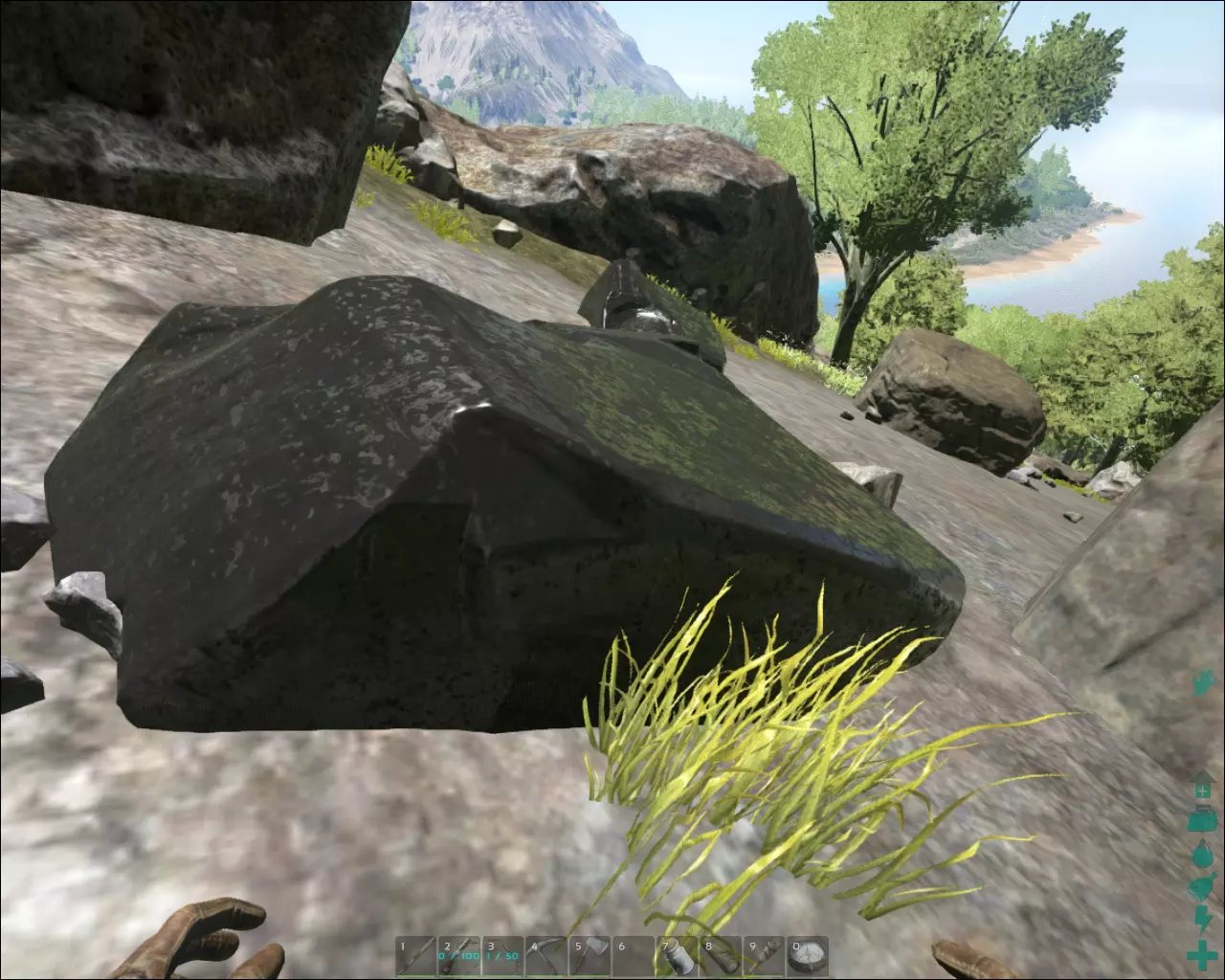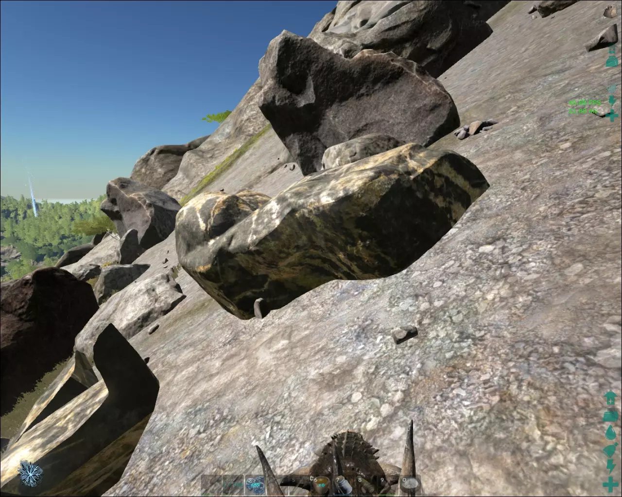 资源 这里简单展示一下资源的外观图片链接。我用恐龙图片替代了缺失的截图,之后会进行替换。由于我仍在探索地图,这些区域可能并非最佳位置。 注意:下文提到山脉并称之为“最佳地点”时,我自动排除了雪地生物群系,因为那里相当危险。不过就所有资源而言,雪地生物群系的资源浓度最高,只是那里的生物和气候使其无法成为“最佳地点”。 金属 分布在多岩石的山脉上。就密集的金属和黑曜石区域而言,白石山似乎是最佳山脉。