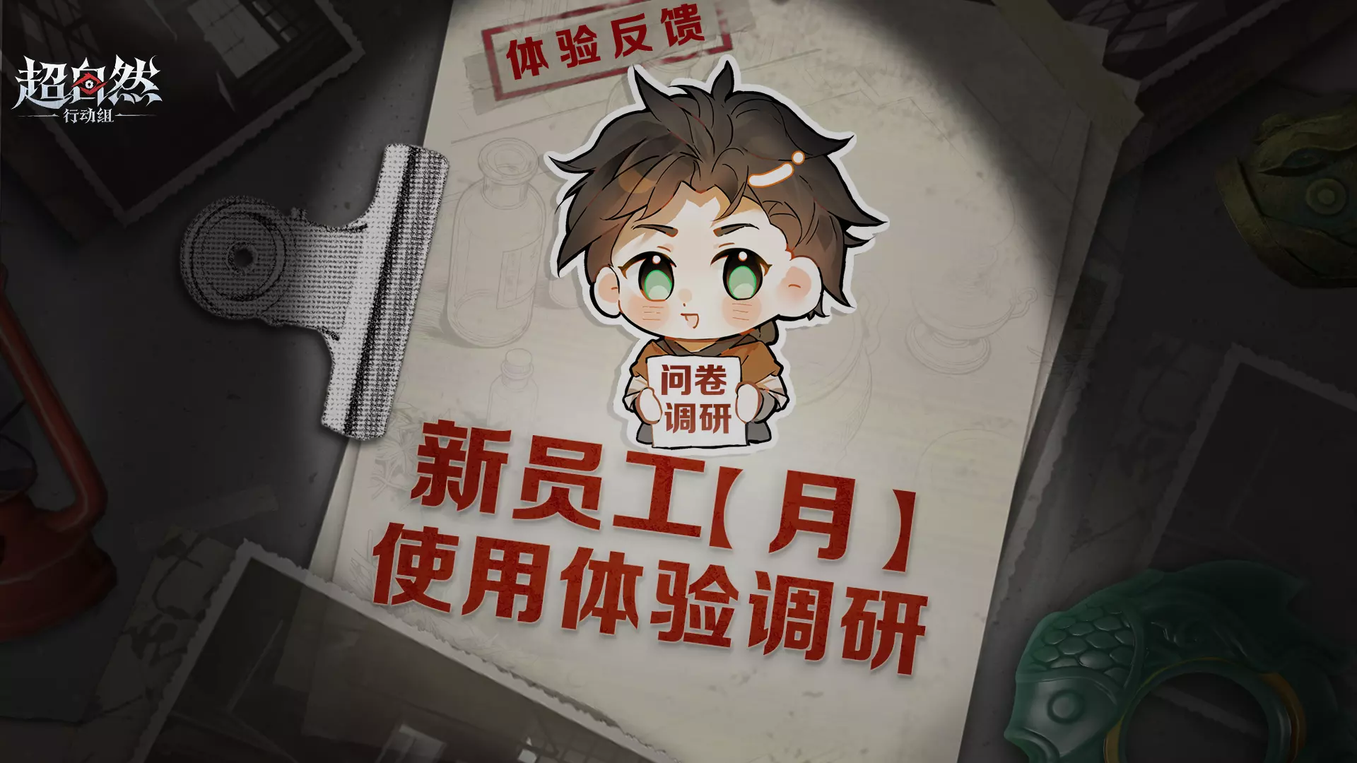 《超自然行动组》开展新员工【月】游玩体验调研,邀请玩家填写问卷反馈体验与优化建议,填写后可参与抽奖,将抽取20位参与者各送10w铲铲币,获奖玩家需在7个工作日内联系相关工作人员。