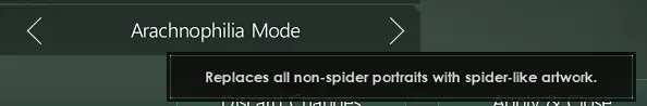 是的,克里杰德克监护领的设定有意保持不变。在【蜘蛛狂热爱好者模式】中,我们的官方设定是,该种族的外壳由数千只蜘蛛操控。 在帝国创建、帝国选择以及其他某些可选择肖像的用户界面(如高级基因改造)中,肖像上方会出现一个小图标。 【肖像替换】设置会在你的客户端上替换这些肖像,但即便你拥有了合适的蜘蛛外观,内心深处真正的羞耻感依然存在。像【虫害】这样的事件会知晓你究竟是真正的蜘蛛,还是仅仅外表看起来像蜘蛛。由于此肖像替换系统仅在本地生效,在多人游戏中,其他玩家仍会看到你的真实样貌,除非他们也开启了【蜘蛛狂热爱好者模式】。该系统可随时启用或禁用,以防你突然发现自己的腿数量不足。