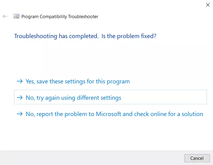 否,使用其他设置再试一次