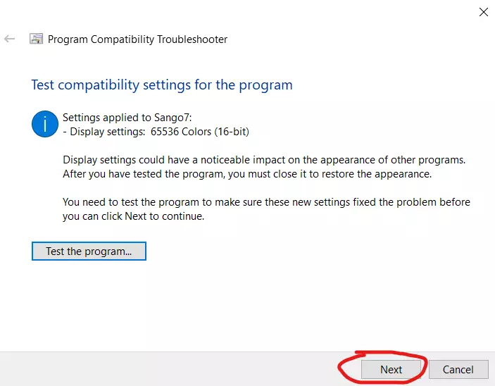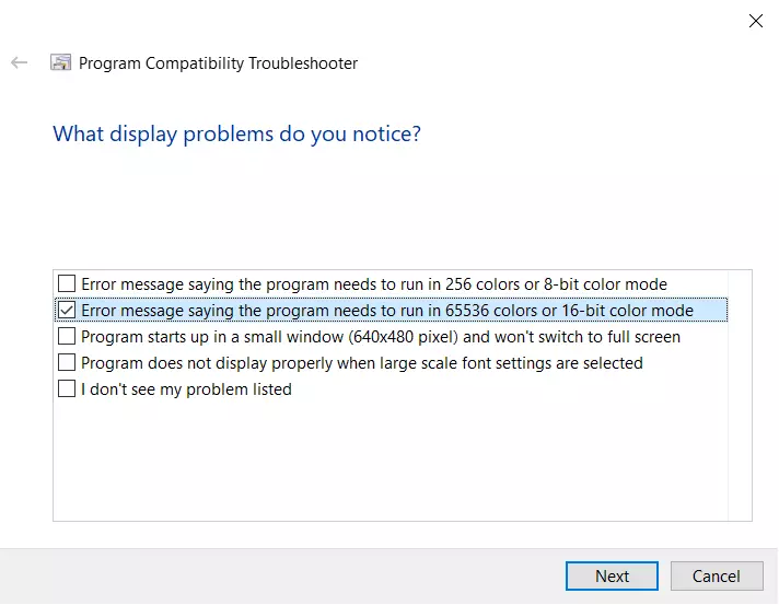 7 勾选“错误消息指出该程序需要在65536色或16位彩色模式下运行”