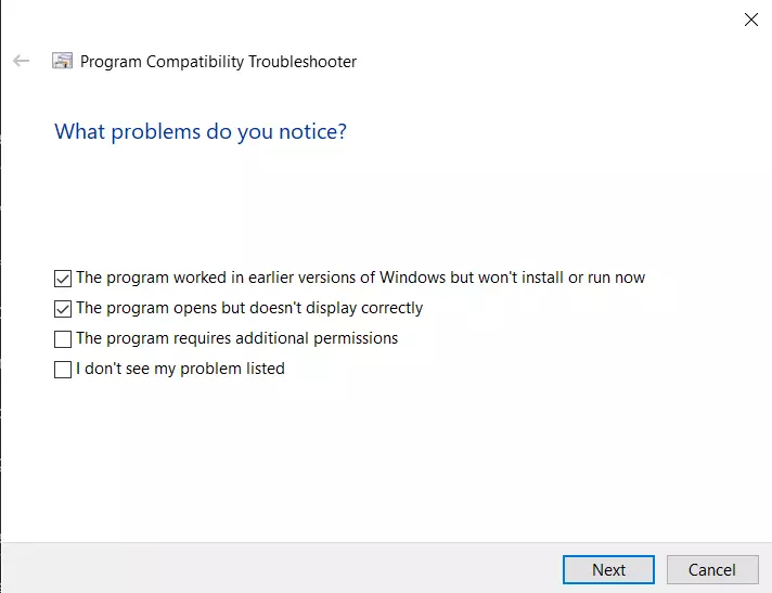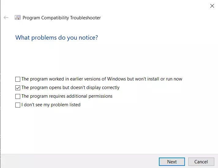15 勾选“此程序在以前版本的Windows中正常工作,但现在无法安装或运行”和“程序已打开,但显示不正确”