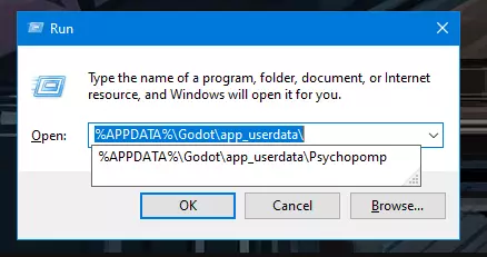 将以下内容复制并粘贴到文本输入框中:%APPDATA% Godot app_userdata Psychopomp