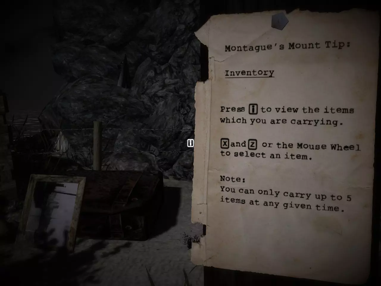 物品栏 蒙塔古的山提示: 物品栏 按【i】键查看你携带的物品。 按【x】键和【z】键或鼠标滚轮选择物品。 注意: 你在任何时候最多只能携带5件物品。