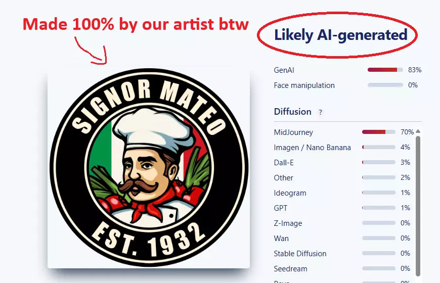 记住:直觉可能具有误导性。 然而,有一点需要重点说明。许多最常被指控为AI生成的素材,例如披萨店的标志、社区更新中展示的画作、清洁女工形象,甚至是配音,都已经经过彻底调查并被证实并非AI生成。在很多情况下,这些素材要么是由我们的艺术家完全创作的,要么来自生成式AI兴起之前的资源。 这就是为什么我们请大家记住,直觉可能具有误导性。