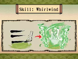旋风术 旋风术能让天照通过绘制三条水平线(≡)制造小型旋风,对附近敌人造成伤害。 首次获得旋风术的地点是北方琉球海岸,与虎鲸对话并成功捕获马林鱼后即可解锁。 获取旋风术的步骤如下:首先购买马林鱼竿(在清安城或北方琉球海岸均可买到),然后骑乘虎鲸前往最大的西岛,与那里的渔夫交谈。接着开始钓鱼,直到钓上马林鱼,之后将马林鱼带到北方琉球海岸沙滩上的海之家餐厅。在提示出现时,绘制风神印记(≡),风神就会现身并传授天照旋风术。 注意:无论旋风的大小、威力和持续时间如何,每次使用都消耗3个墨水瓶。绘制更长的线条会使出招更快但威力更强的攻击。