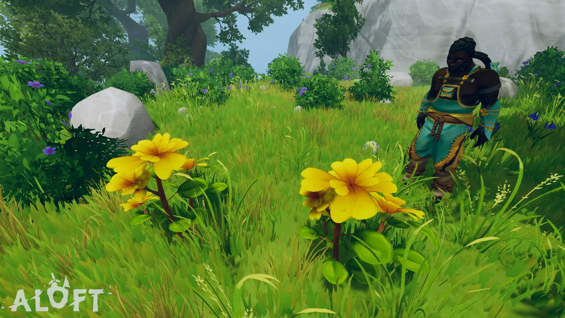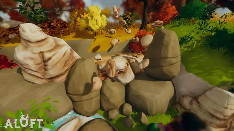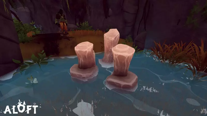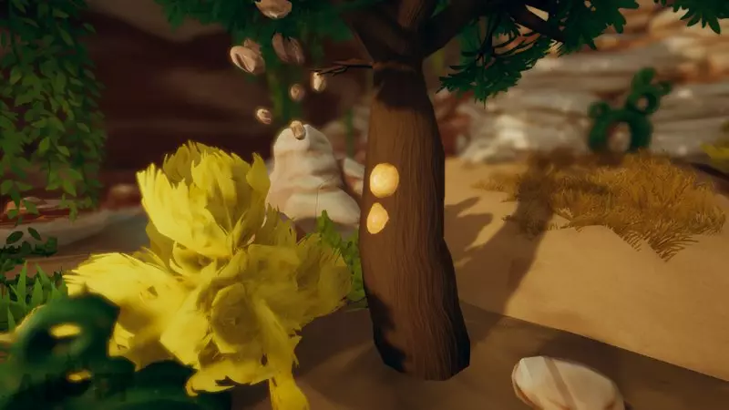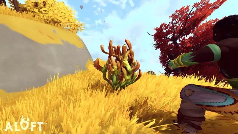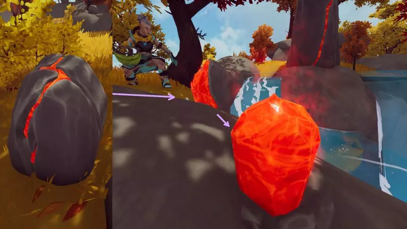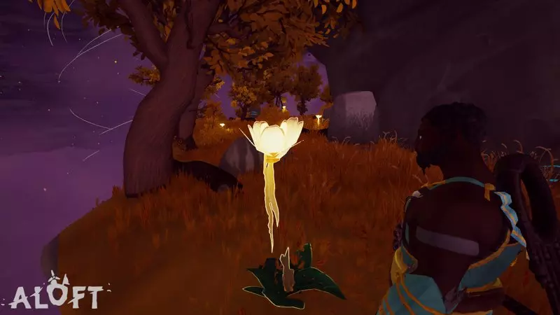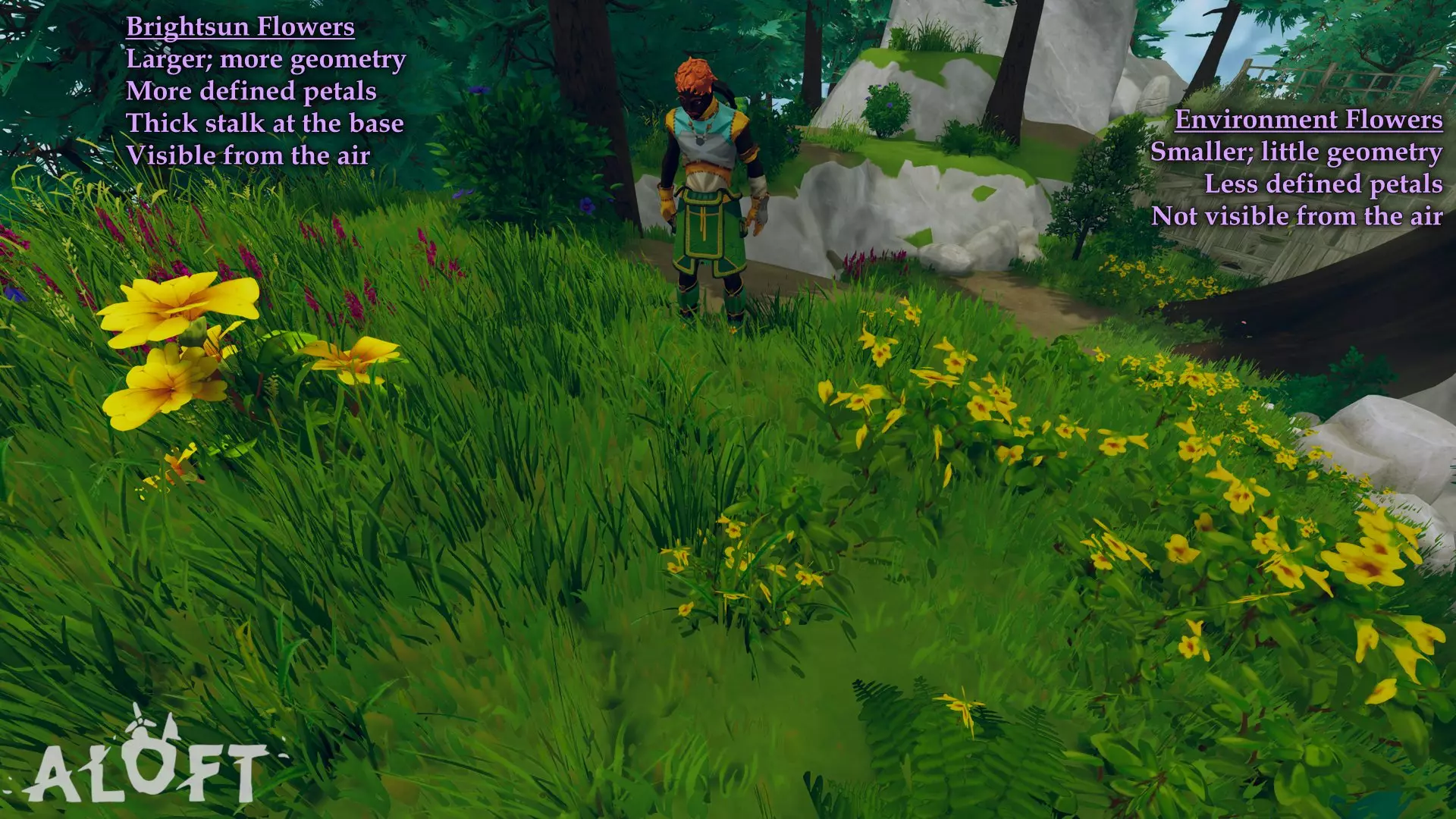 你可能会注意到这种花看起来和另一种用于装饰环境的黄色花朵非常相似。我制作了一张图片来指出它们之间的区别。最重要的是,你可以在滑翔时发现可采集的资源(这会导致环境花朵被隐藏)。硬石