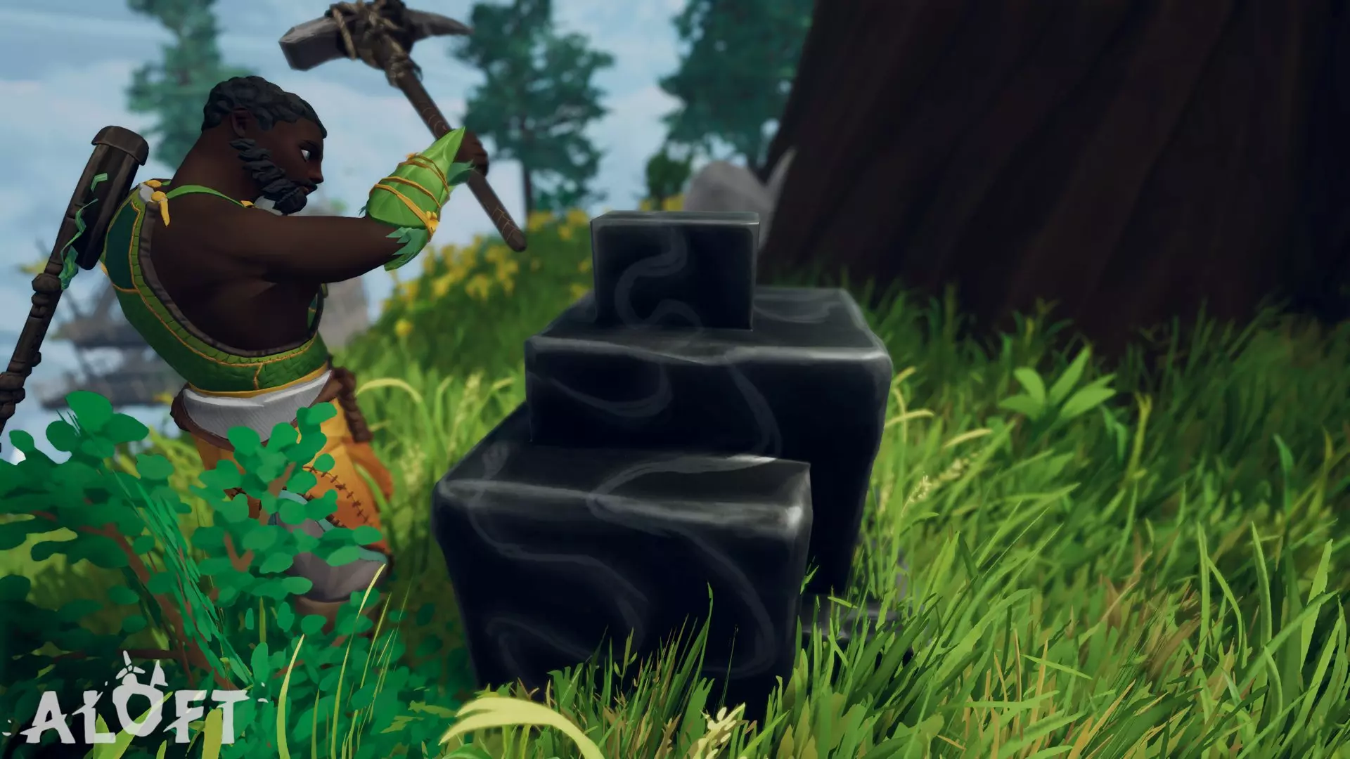 你几乎可以立即获得一些木材部件来建造,并且可以使用你的素描本快速学习各种木材和石材建筑部件。 请注意,木材建筑和石材建筑之间没有功能上的差异。从技术上讲,木材比石材更容易获取(因为你可以自己种植),但实际上这并不重要。根据你的视觉偏好选择一种或两种都选。建造部件 - 木材 木质墙壁和地板:3木材 木质地基:1-4木材 木质围栏、格子地板/墙壁及楼梯:4木材 木质框架:2木材 木质门:5木材 绳索围栏:2-4木材,2-3绳索 草皮屋顶:3木材,1草皮 木瓦屋顶:1木材,2木板 格子架(拱门):10木材,可能需要25树叶 木质码头:5木材,4绳索,2风石水晶 藤条窗户:3木材,5小型植物 水晶窗户:3木材,2风石水晶 自定义长叶布:4+叶布 自定义原木横梁:根据长度,消耗不定量的木材或木板 自定义绳索:根据长度,消耗不定量的绳索 建造部件 - 石材 石材地基(大/中/小):1/1/1木材,8/4/1石材 石材墙壁、地板及部分框架:1木材,2石材 石材楼梯:6石材 石材围栏:3石材 石材柱子:1或者2个石头建造部件——土坯和黑木。当你到达红崖生物群系时,可以绘制土坯结构的草图。这些结构都需要黑木,这使得它们实际上过于昂贵,无法大量建造。Adobe/黏土地基(大/中/小):2/1/1 黑木,8/4/1 黏土 Adobe/黏土地板、墙壁、框架:1 黑木,2 黏土 Adobe/黏土弧形墙壁、框架:1 黑木,3 黏土 Adobe/黏土楼梯、Adobe/黏土螺旋楼梯:1-3 黑木,1-2 黏土 黑木楼梯:1-2 黑木,1-4 黑木板 Adobe/黏土墙壁:1 黑木,1 黏土 黑木栅栏:1-3 黑木板 黑木弧形栅栏:3 黑木板 Adobe锥形地基:1 黑木,1 黏土 陶土屋顶:1 黑木,4 黏土砖 黏土/Adobe圆顶屋顶:2 黑木,8 黏土 捕风器/Adobe框架:1 黑木,2 黏土 (黑木)格子地板/墙壁:1-4 黑木板 蛋白石框架:4 雕花黑木,7 水蛋白石 蛋白石门:6 雕花黑木,6 水蛋白石 蛋白石横梁:3 雕花黑木,3 水蛋白石 蓝图 > 家园 < 家园风筝>:3木材,1叶布,1绳索 树叶床:5木材,3叶布,3树叶 树叶睡袋:3叶布 <工作台>:5木材 <滑翔机支架>:5木材(通过生物群系1壁画1解锁) 缝纫桌:3木材,5雕刻木材,3羊毛线,3羊毛布,2干草 <升级站框架>:10石头,10木材——适配以下三个工作站: <涂层站>:5迈克特纤维,5雕刻木材(使用研究站解锁) 磨刀站:2木制齿轮,5雕刻木材,3硬石 定制站:5雕刻木材,3羊毛线,1黄色颜料 <研究实验室>:3石头,10木材,1雕刻木材,2纸张(通过生物群系1壁画3解锁) 营火(小型):5木材,6石头,3木炭(+1点火)——可放置3个盘子 营火(大型):8木材,16石头,5木炭(+1点火)适配8个盘子的壁炉:3木材、12石头、3木炭(+1点火) 适配1或4个盘子的烹饪盘:5石头 蓝图>生产组件制作 <磨石>:5石头、3木材 颜料池:10石头、5木材、3木制齿轮、5脏水、3羊毛布 <织布机>:5雕刻木材、5羊毛线、2木制齿轮(通过生物群系1壁画4解锁) <锯木厂>:5木材、12尖石、2木制齿轮(通过生物群系2壁画2解锁) <亚麻碎茎机>:3木制齿轮、5木板(在生物群系2的学习石碑处解锁)