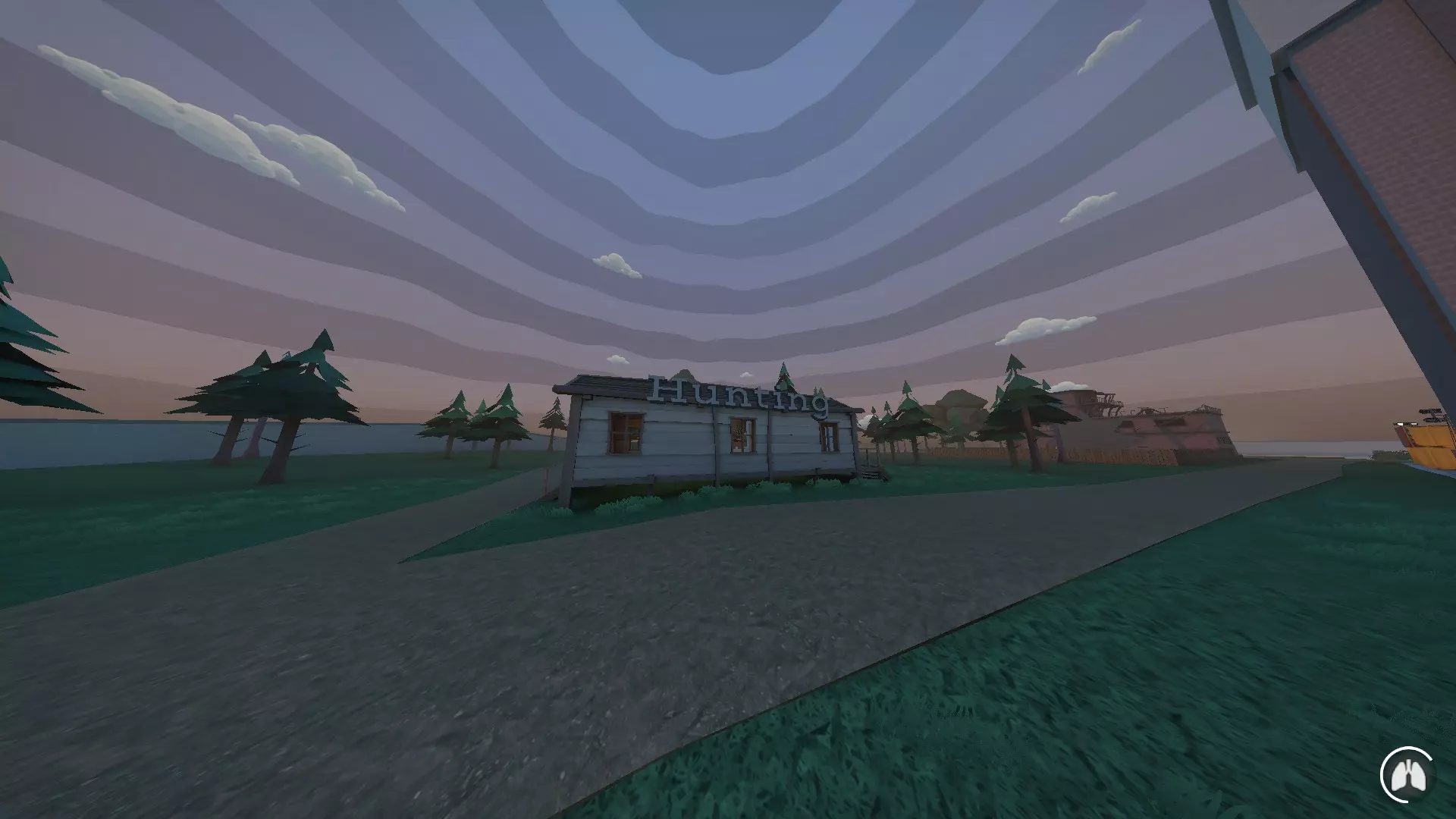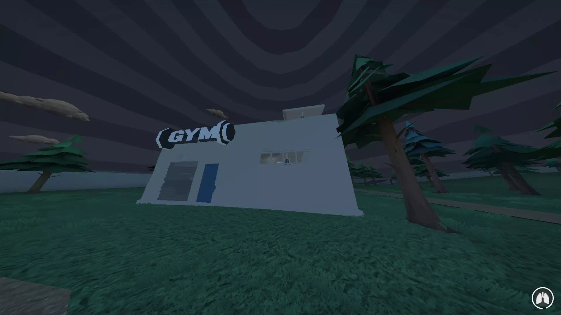 你可以出售捕获的鱼来获取 gorebucks(游戏内货币)。这里也会刷新物品。 海滩也位于它的前方,那里同样会刷新物品。 健身房 这是一个小型地标,玩家可以在这里通过跑步机锻炼来提升速度,或者使用沙袋来提高伤害抗性和近战伤害输出。建筑侧面还有一台自动取款机,你可以通过抢劫自动取款机来获取金钱。