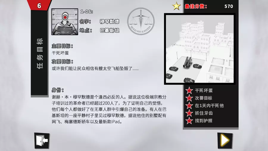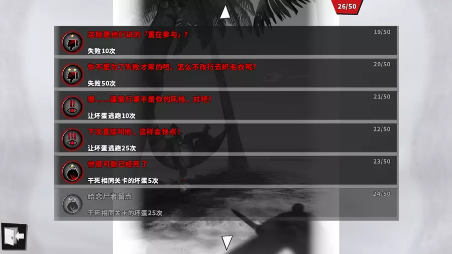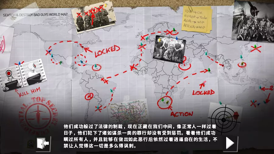 《干死那坏蛋》是一款策略暗杀类游戏。玩家将化身为神秘组织中的一名杀手,通过观察敌人的行动来制定出一套暗杀计划,从而消灭那些坏蛋,保卫正义。 补丁目的对《干死那坏蛋》进行汉化。 参与成员全部:Virtualname 字体:思源黑体 补充说明补丁对应操作系统为Windows,对应游戏平台为Steam。 补丁为完全汉化,支持Steam成就解锁。 使用事项本补丁仅为学习和交流之用,禁止用于商业用途,否则后果自负。 本组保留文本和数据资料的所有权,未经同意,严禁修改、整合或重新包装。 因使用补丁而造成的任何损失,本组概不负责。 欢迎转载或用于实况,但请注明来源和相关信息。效果预览