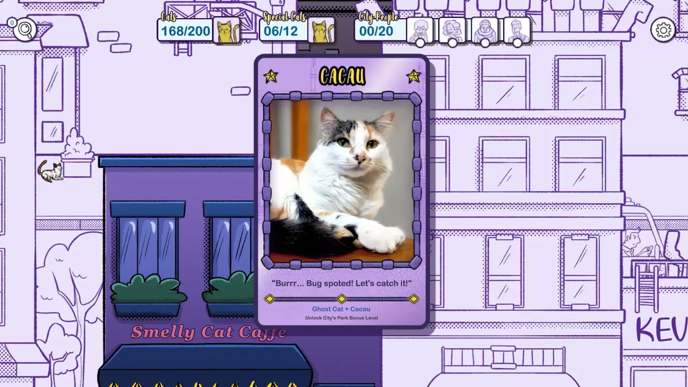 每次找到一只猫,你都会获得一张该猫咪专属的特殊卡片。