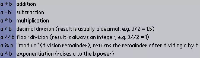 运算符 在Lua中你可以进行多种数学运算,以下是带有说明的运算符列表。