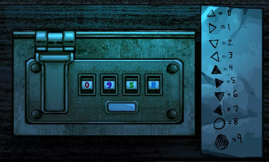 谜题2 每只手都在说谎,如果你对此感到好奇,那么选择哪只手其实并不重要,随便选一只就行,注意不要在快速反应事件中失败。 谜题3 要获取密码,你必须关灯后在房间里四处寻找线索。