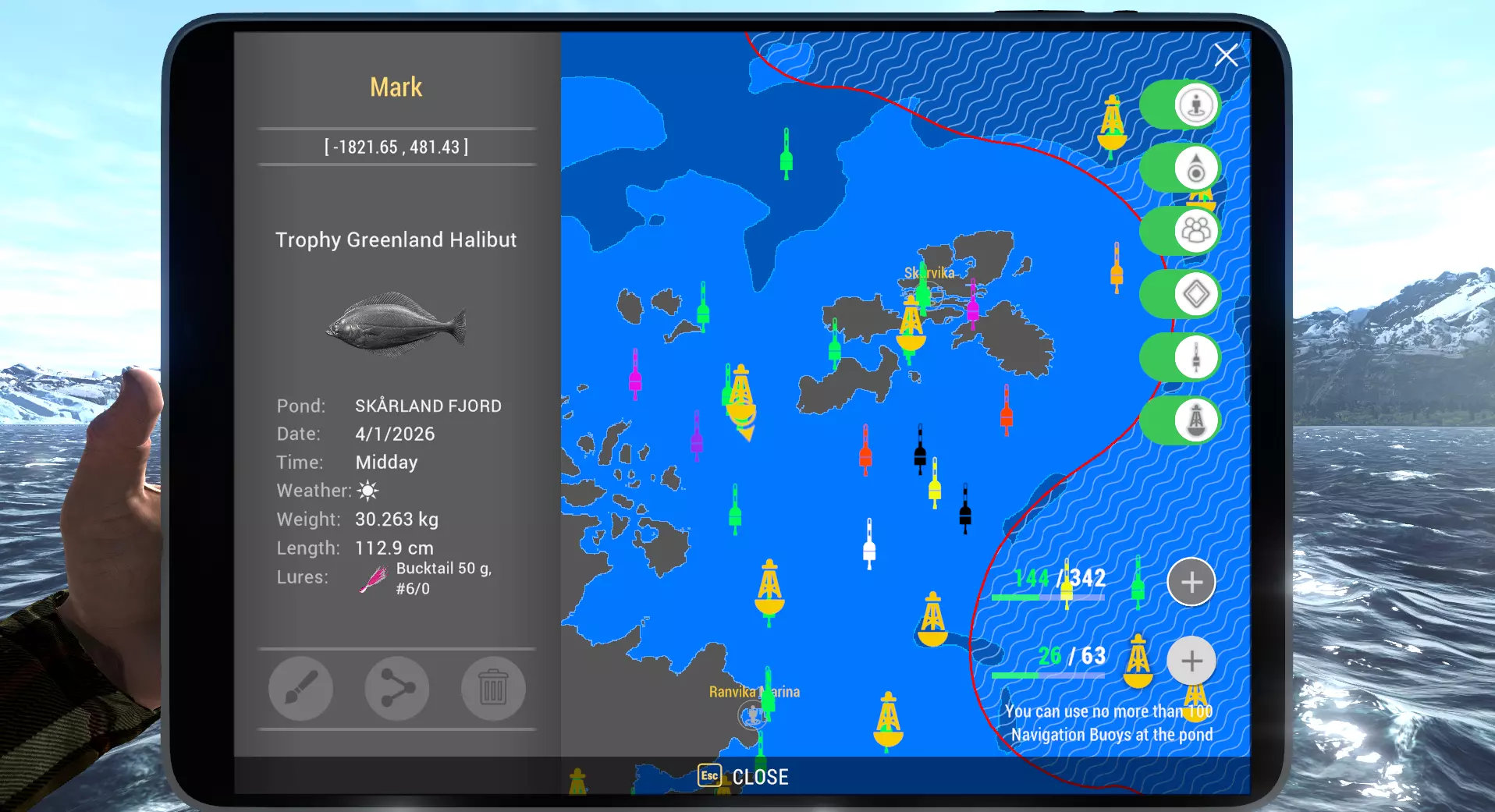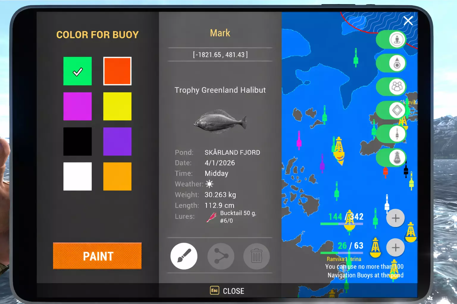 一旦你选择了想要的颜色,确认更改后,平板电脑地图上的浮标和水中漂浮的3D浮标都会同步更新。