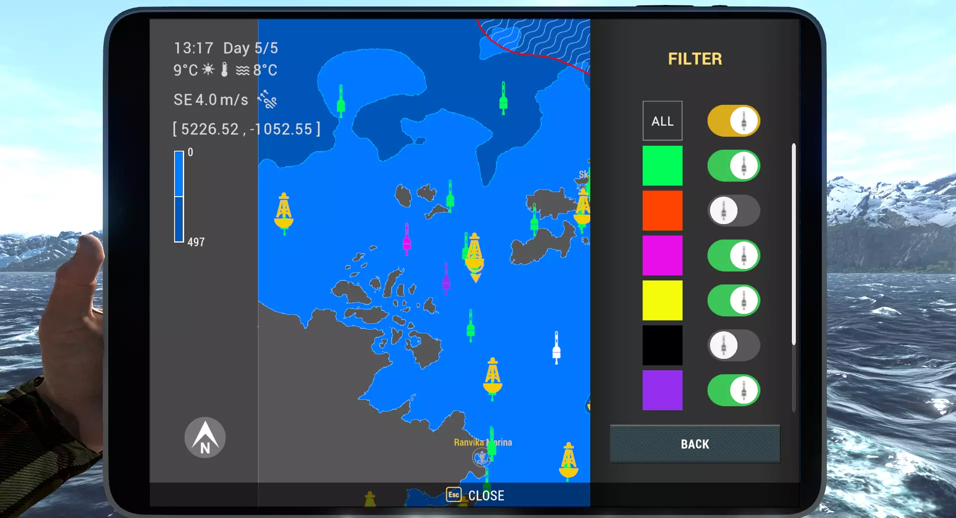 每位钓手都能创建自己的浮标颜色系统,用于标记【独特鱼】和【奖杯鱼】,区分休闲钓点与竞赛区域,或按个人喜好整理钓点位置。浮标颜色可随时更改,没有限制。 由于每位玩家都会使用自己的系统,共享浮标将始终显示为默认的绿色。接收方玩家可以根据自己的意愿自定义这些浮标颜色,或直接保留绿色。 浮标平板筛选功能 当你开始使用多种颜色时,平板会成为便捷的整理工具。 你可以在平板上直接按颜色筛选浮标,随时显示或隐藏特定颜色的浮标。如果你希望地图简洁,还可以完全切换所有浮标的可见性。