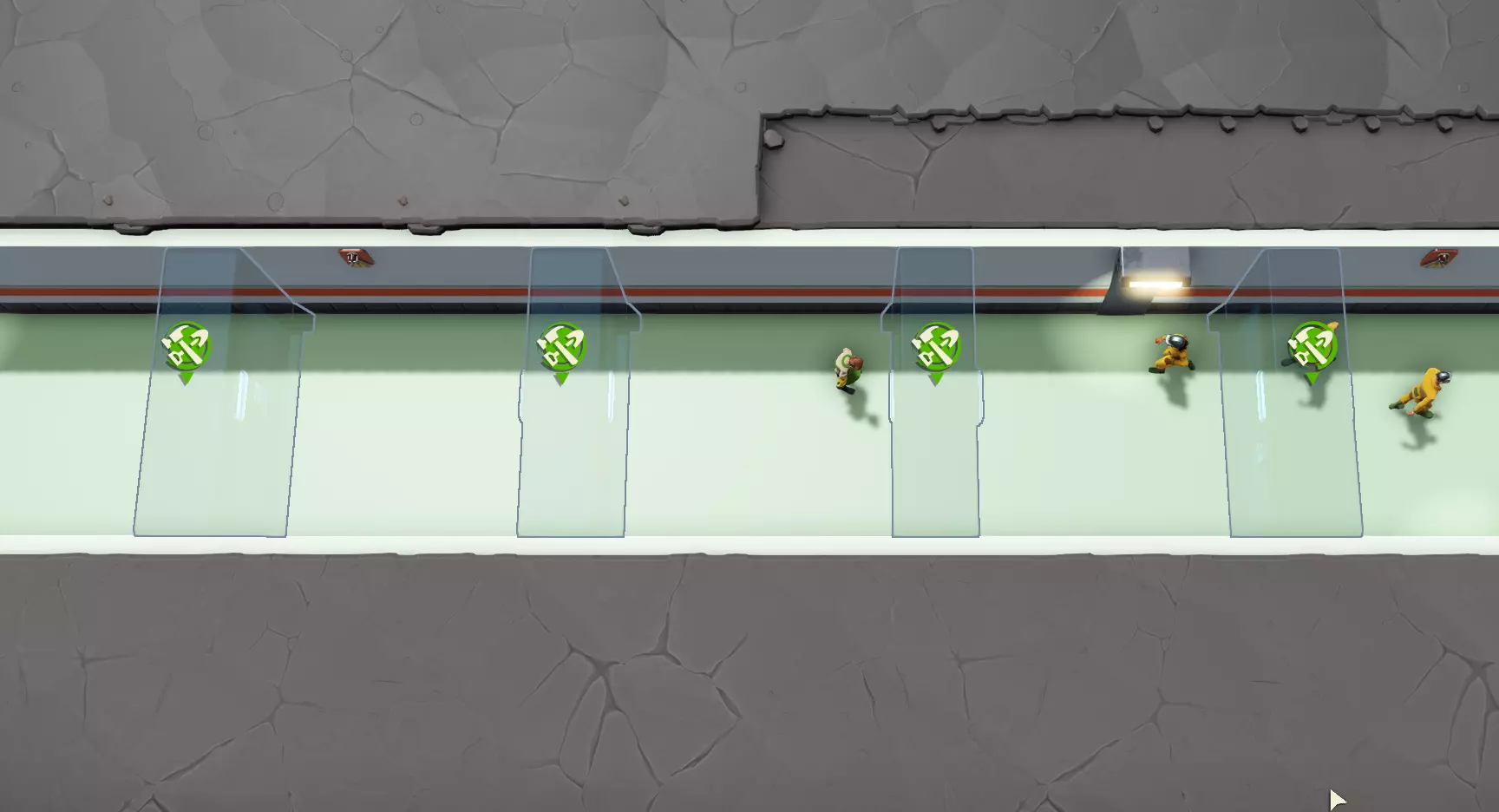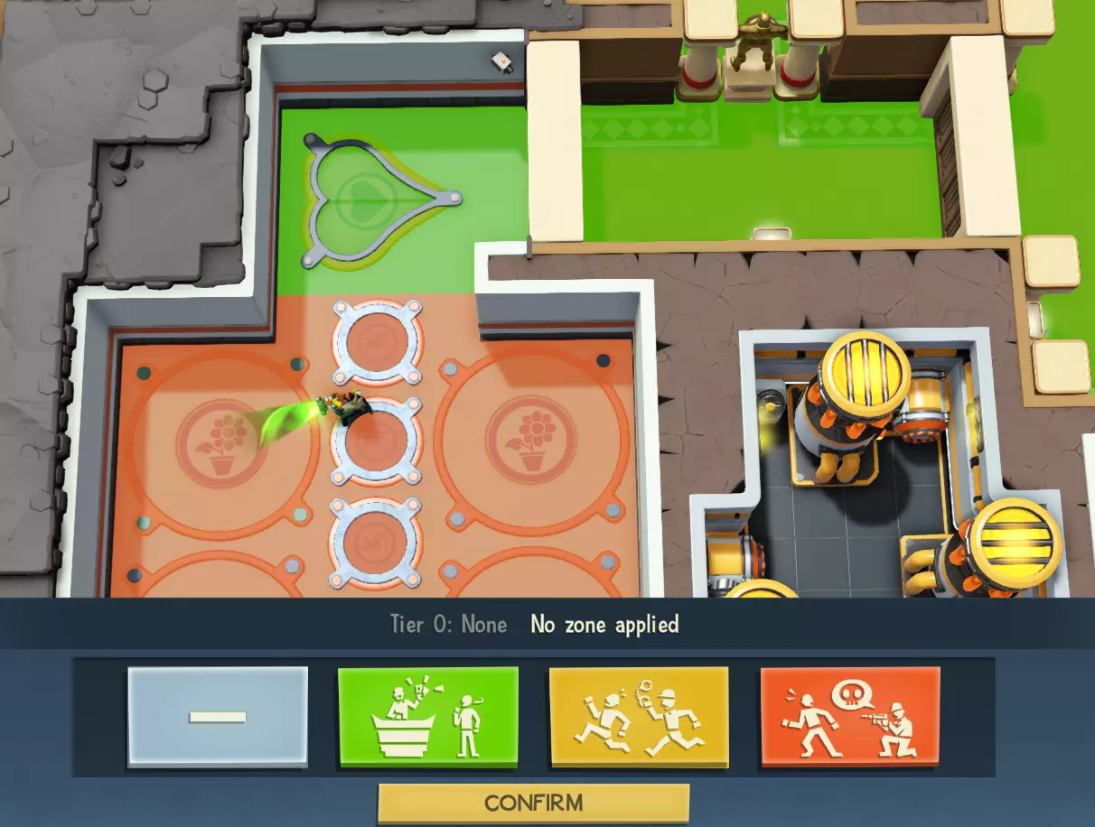 区域由墙壁和门来界定。如果多个房间相连且它们之间没有门,那么所有这些房间都算作一个区域。如果你用门暂时将一个房间分成两部分,它就会算作两个区域。 为区域应用多个入侵者协议的方法: 暂停游戏。 在你希望标签发生变化的位置添加墙壁或门。 区域的变化是暂时的。