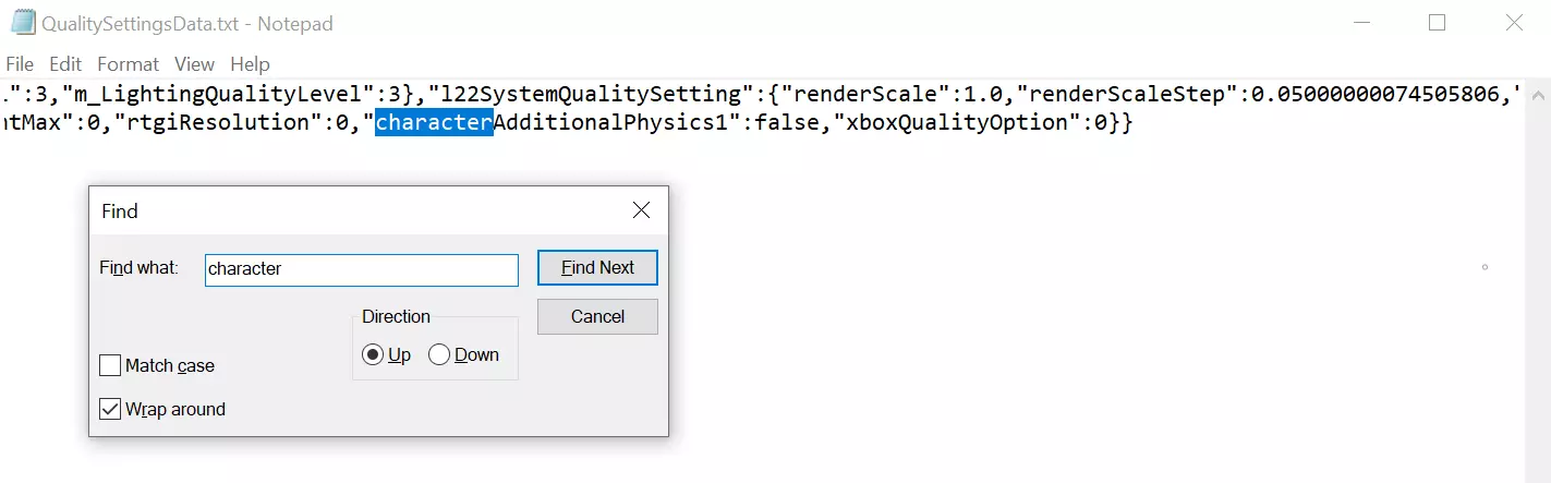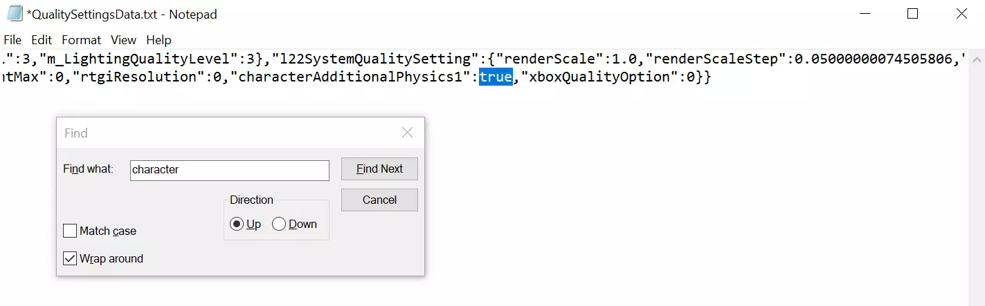 搜索:【characterAdditionalPhysics1】 按下【CTRL + F】→ 输入【character】