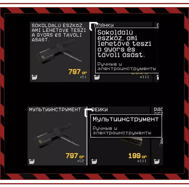 你好,拾荒者!首先想说的是,游戏中已经有开发者提供的俄语本地化,但部分内容质量很差。因此我决定制作一个全新的本地化版本。 原生本地化的主要缺点之一是游戏中使用的某些字体不支持西里尔字母。这导致了以下问题: 1. 物品描述缺失