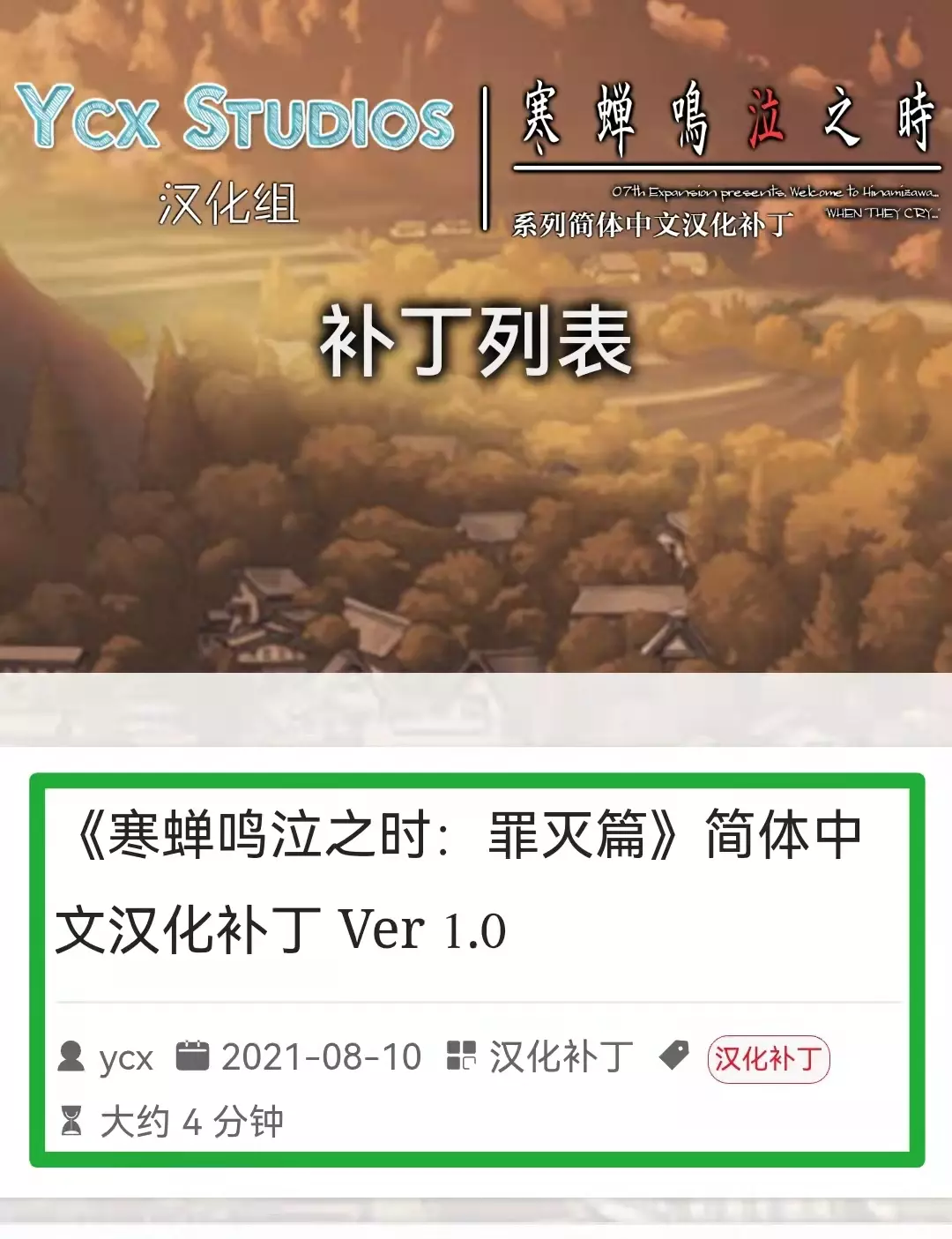 点击“《寒蝉鸣泣之时:罪灭篇》简体中文汉化补丁 Ver 1.0”,按照里面的教程进行补丁的安装即可。