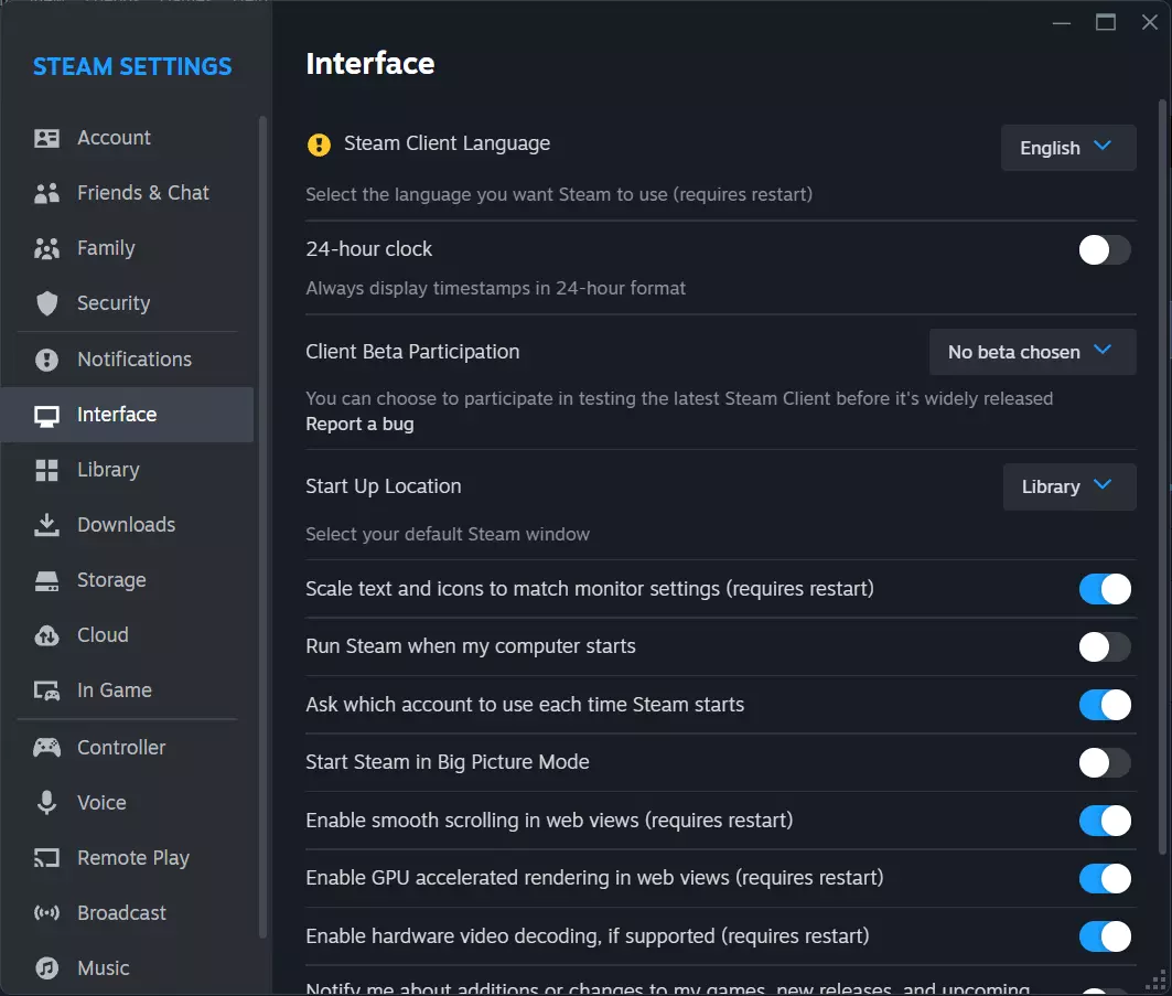 100%有效的PC端游戏语言设置方法 步骤1:打开Steam客户端设置