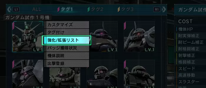 ■调整MS列表界面的子项目 ⇒扩展技能此前位于【强化列表】中,因名称不够清晰,故将其重命名为【强化/扩展列表】。