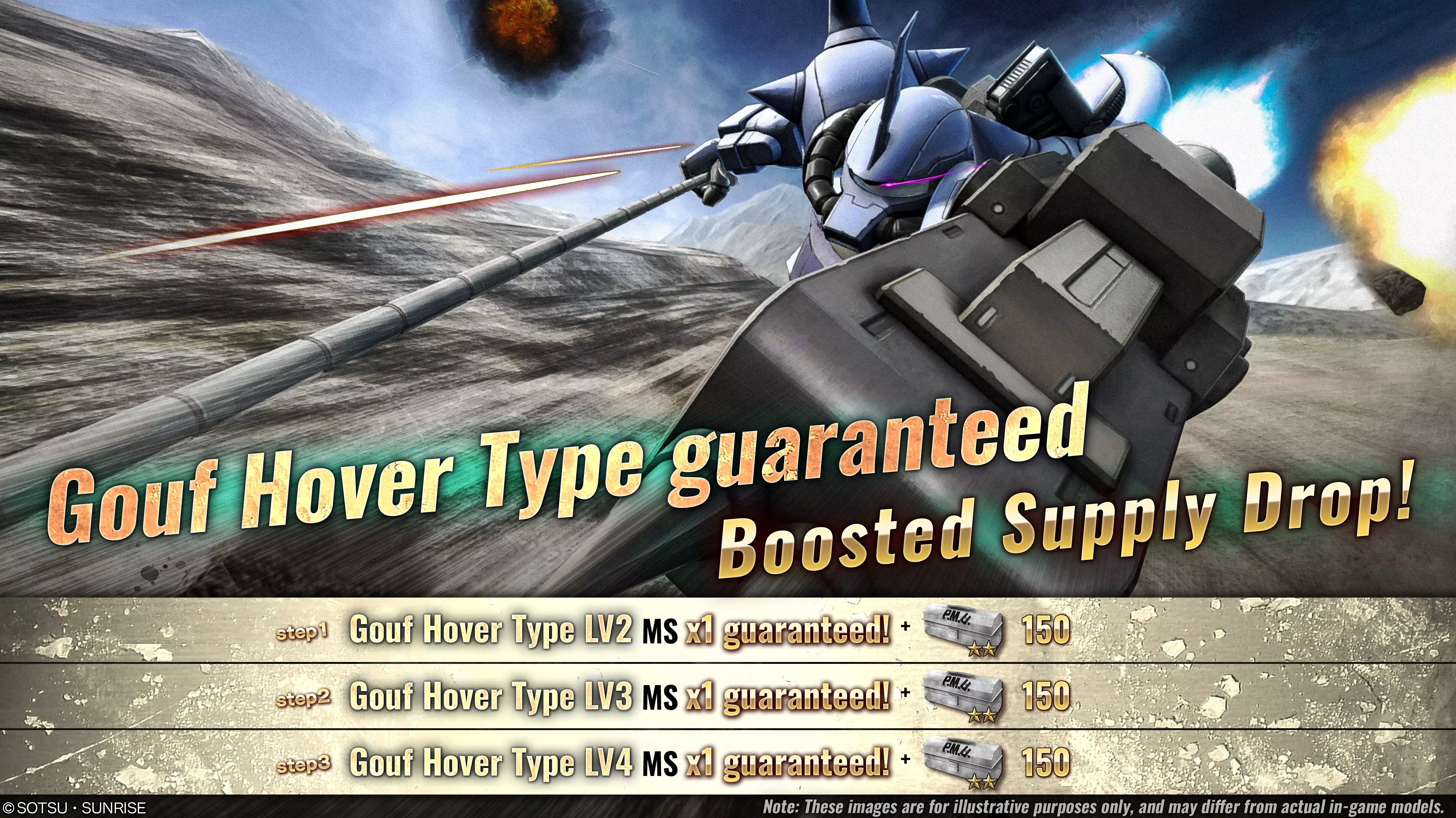 ■活动时间 [PDT时区] 2026年4月2日 01:00 – 2026年4月8日 21:30 [预定] [CEST时区] 2026年4月2日 10:00 – 2026年4月9日 06:30 [预定] ■活动内容 本次补给箱活动中,可进行最多至第3阶段的10连补给箱抽取。 每次进行抽取后阶段将提升1级,顺序为阶段1→阶段2→阶段3。 达到阶段3后,本次强化补给箱活动结束。 ・阶段1(消耗30代币):必定获得1台陆战型古夫LV2!额外附赠150个★★改装套件! ・阶段2(消耗30代币):必定获得1台陆战型古夫LV3!额外附赠150个★★改装套件! ・阶段3(消耗30代币):必定获得1台陆战型古夫LV4!额外附赠150个★★改装套件! ※抽取到的补给内容与当前正在进行的补给箱活动相同。详情请查看【道具列表】。 ※请务必确认活动日程,以免错过任何内容。 ■补给箱阵容“Haze'n-thley II Rah”公告 补给箱阵容已更新。