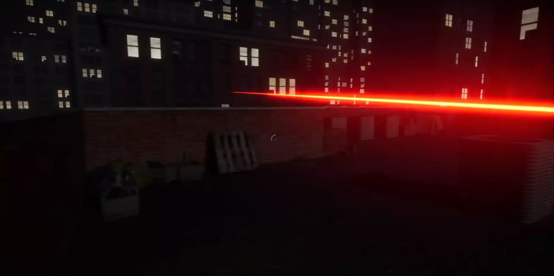 不要惊慌。不要静止不动。四处跑动时不要打开手电筒。如果需要,只需打开手电筒一瞬间。如果可以,关掉一些灯。然后你可以躲在浴缸里,或者床底下。等待时间取决于关闭的灯的数量。关掉的灯越多,他放弃得就越快。 我看到屋顶上有一道激光。