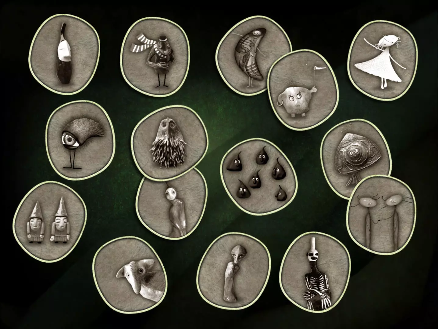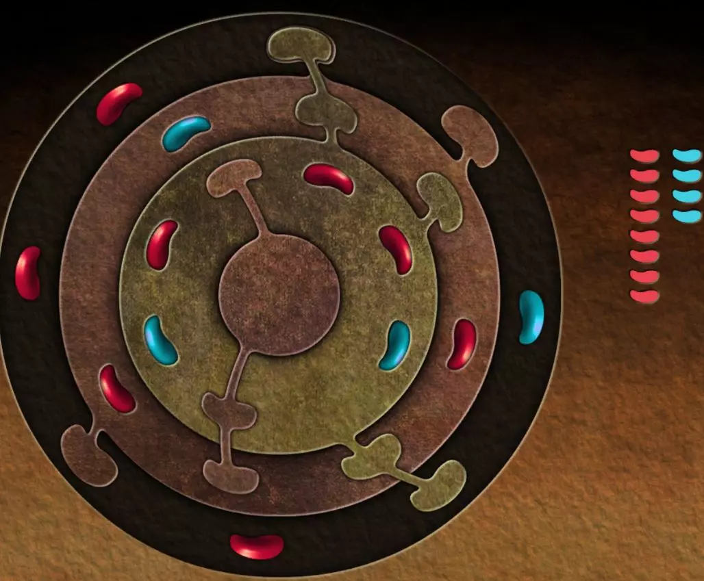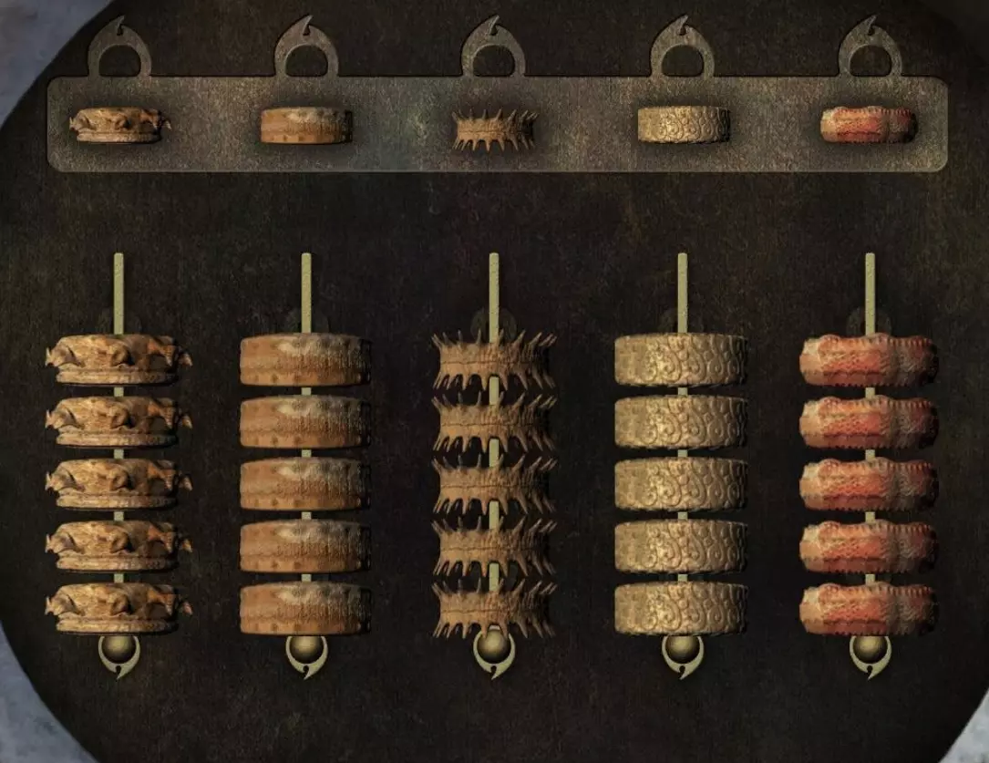 圆环1:蜻蜓环绕的雕像上的礼帽装饰(场景3);圆环2:房屋门框上的蘑菇(场景4);圆环3:戴礼帽的雕像头部(场景5);圆环4:头骨可打开的雕像头部(场景2);圆环5:果树树干上的孔洞(场景1);圆环6:迷宫右侧场景,钥匙左侧墙上的图案(场景10);圆环7:托尔斯托苏马卧室上方的红发雕像头部,大型计划(地点15);圆环8——托尔斯托苏马卧室中其头顶上方的树枝(地点16);圆环9——岩石地点的结构,在该地点内部你收集过碎片(地点12);圆环10——大型迷宫平面图(地点10);圆环11——带有蓝色水滴和双手图案牌匾的雕像头部(地点13);圆环12——墙上的蜥蜴(地点17);圆环13——带电大门,左侧一半的电线(地点27);圆环14——带有彩色的浅浮雕手中的画(场景22);圆环15——城市远景中带有月亮的雕像头部(场景21);圆环16——柱子上的涂鸦(场景25)。 回到蒙古包后面的场景。靠近雕像的龟壳,按下颈部的按钮。你会看到头部的圆环由黑白扇区组成。根据找到的提示给圆环上色。
