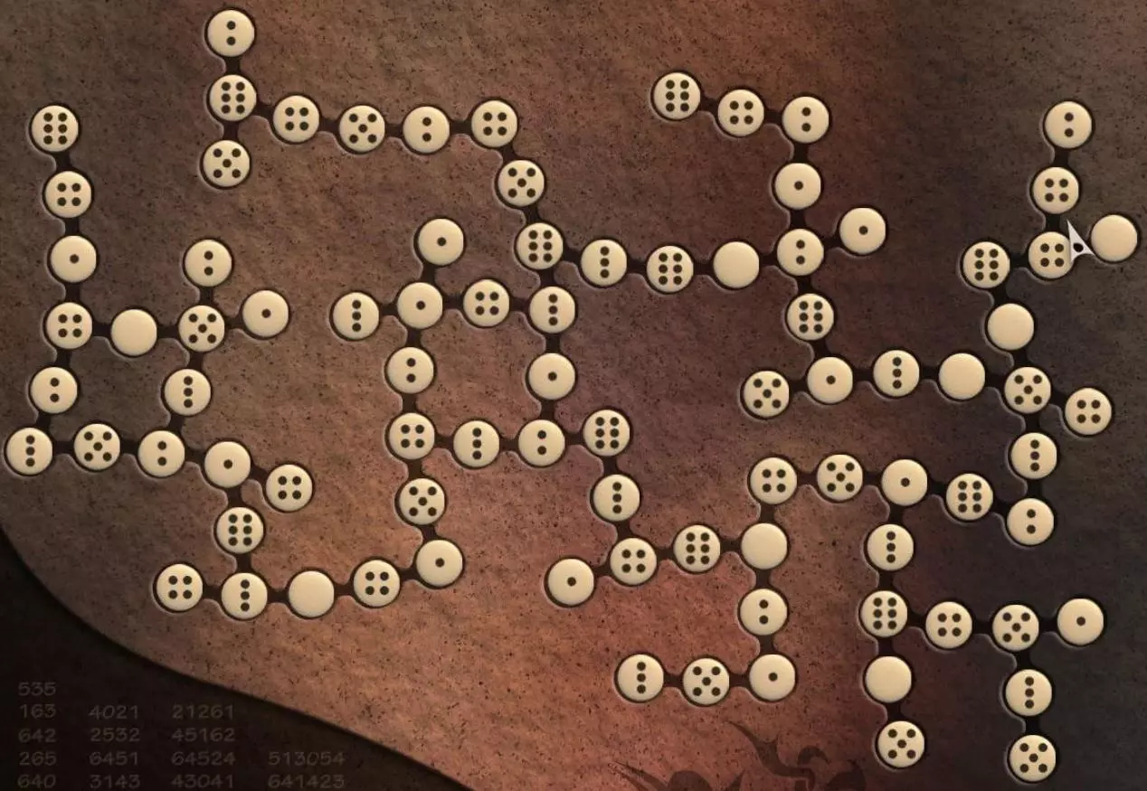 拉动绳子,打开另一个区域的灯光。你会来到一个有柱子的大厅。每对柱子之间都有一个区域。 点击左侧的柱子。你会看到一个带有按钮的橙色装置。装置下方有一个老鼠洞,洞里放着第二十二片叶子。 顺时针移动(向右)。在下一个区域点击柱子上的按钮。屏幕深处壁龛下方的四盏绿灯中,第三盏会亮起。第三个场景目前没什么特别之处,而第四个场景里住着第十三个家伙。 点击橙色墙壁上的帘子,然后解开谜题。 需要同时计算横向和纵向的数字组合。要输入数字,用鼠标点击圆圈相应的次数。数字为0的按钮不需要点击。