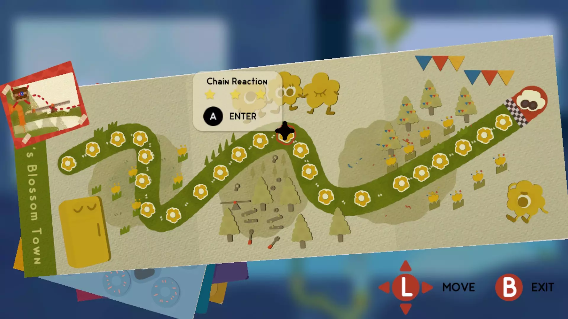 在呼呼的繁花镇的一个名为连锁反应的特定关卡中,你需要从一开始就爬上那些巨石,而不是从它们下面走,然后保持平衡直到到达终点。