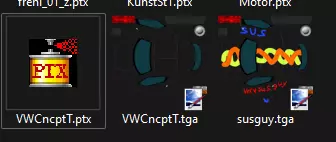 14.在PTX工具中打开与你已完成的tga文件相邻文件夹中的任意ptx文件 注意:没有“导入tga按钮”,tga文件会直接显示在文件列表中