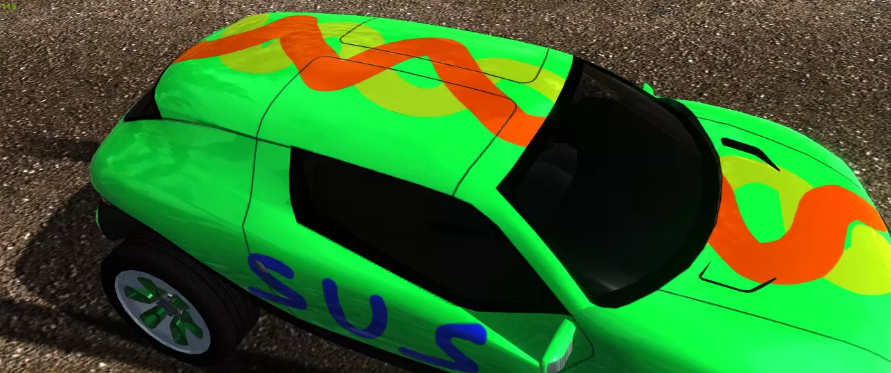 对于概念T车型,你最终会得到这样的结果,但要注意其他车辆可能会有其他材质使用部分纹理,因此在空白区域绘制并不一定“安全”。