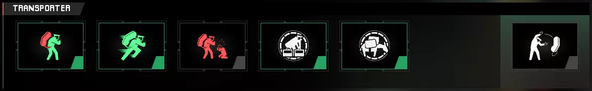 基础:搬运者基础技能在拾取袋子或尸体时提供【冲刺】效果。放下它们会移除该增益。 负重野兽:当【冲刺】激活时,移除重袋子带来的速度惩罚。 深口袋:允许初始携带2个部署物(而非1个),代价是每个袋子的充能减半。例如,这会将1个拥有8充能的护甲包变为2个各拥有6充能的护甲包,总充能为12。 强力举重:将袋子携带容量翻倍(一次2个袋子)。与负重野兽技能结合时,可移除任何相关的速度惩罚。 武器 主武器 莫斯康尼12经典型