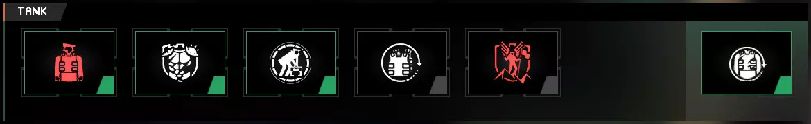 基础:装备坦克基础技能后,你的护甲包充能增加2次(总计6次),护甲恢复速度提升20%。 坚韧:该技能在你的护甲被击破时,提供2秒的伤害免疫。搭配最大数量的消耗品槽位,你可以通过使用ARK来以2秒为单位激活这种免疫效果,实际上将它们变成了“临时无敌快捷键”。拥有5个ARK时,你可以获得10秒的免疫时间。 额外装甲板:此技能为你的护甲包增加2次充能,使总充能达到8次。 清白之 slate:该技能允许你使用一个ARK恢复一块护甲,使得护甲包充能和FAK在这个配装中可以互换使用。