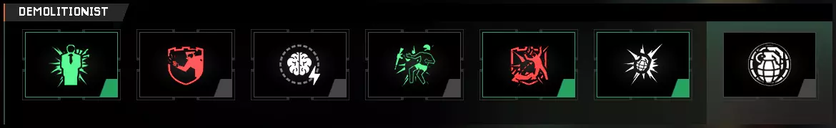 基础:手榴弹爆炸半径增加20%。 防爆护盾:通过消耗坚韧值来抵消自身受到的爆炸伤害。使用执法者基础技能进行近距离击杀即可轻松恢复坚韧值。如果距离被击杀的敌人足够近,甚至可以通过同一次爆炸来恢复。 一触即发:使手榴弹触地即爆,提升使用效率。