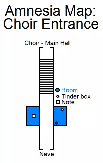 房间 - 房间 火绒盒 - 火绒盒 笔记 - 笔记 无论你向左走还是向右走都没关系,但我更习惯去唱诗班。 直接往前走就行。 唱诗班 - 主厅