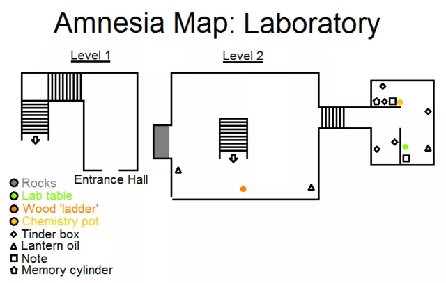 锁着的门 房间 化学品 火绒盒 提灯油 鸦片酊 笔记 怪物 1 - 收集鸦片酊后出现,无法伤害你 沿着楼梯向下走。进入对面的门 - 拿起铜矿石。然后按顺时针方向收集所有物品。收集到炉甘石后,你会被桶击晕,通道会被垃圾堵塞。你需要用手清理通道,如果用手不行,就拿起石头砸卡住的物品(这对我有用)。然后收集鸦片和奥里尼格曼特。恭喜,现在可以前往实验室了。 实验室
