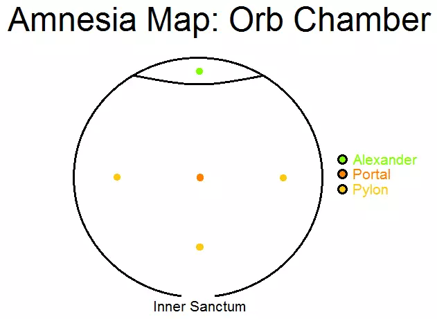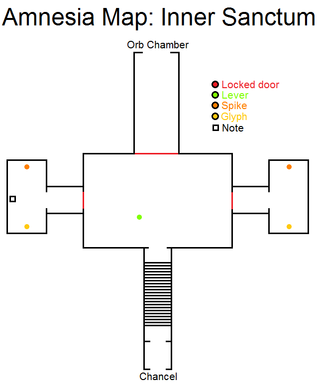 锁着的门 - 关闭的门 杠杆 - 操纵杆 尖刺 - 尖刺 符文 - 符号 笔记 - 便条 向下走。接着从左到右使用献祭台。进入球体大厅。 球体大厅