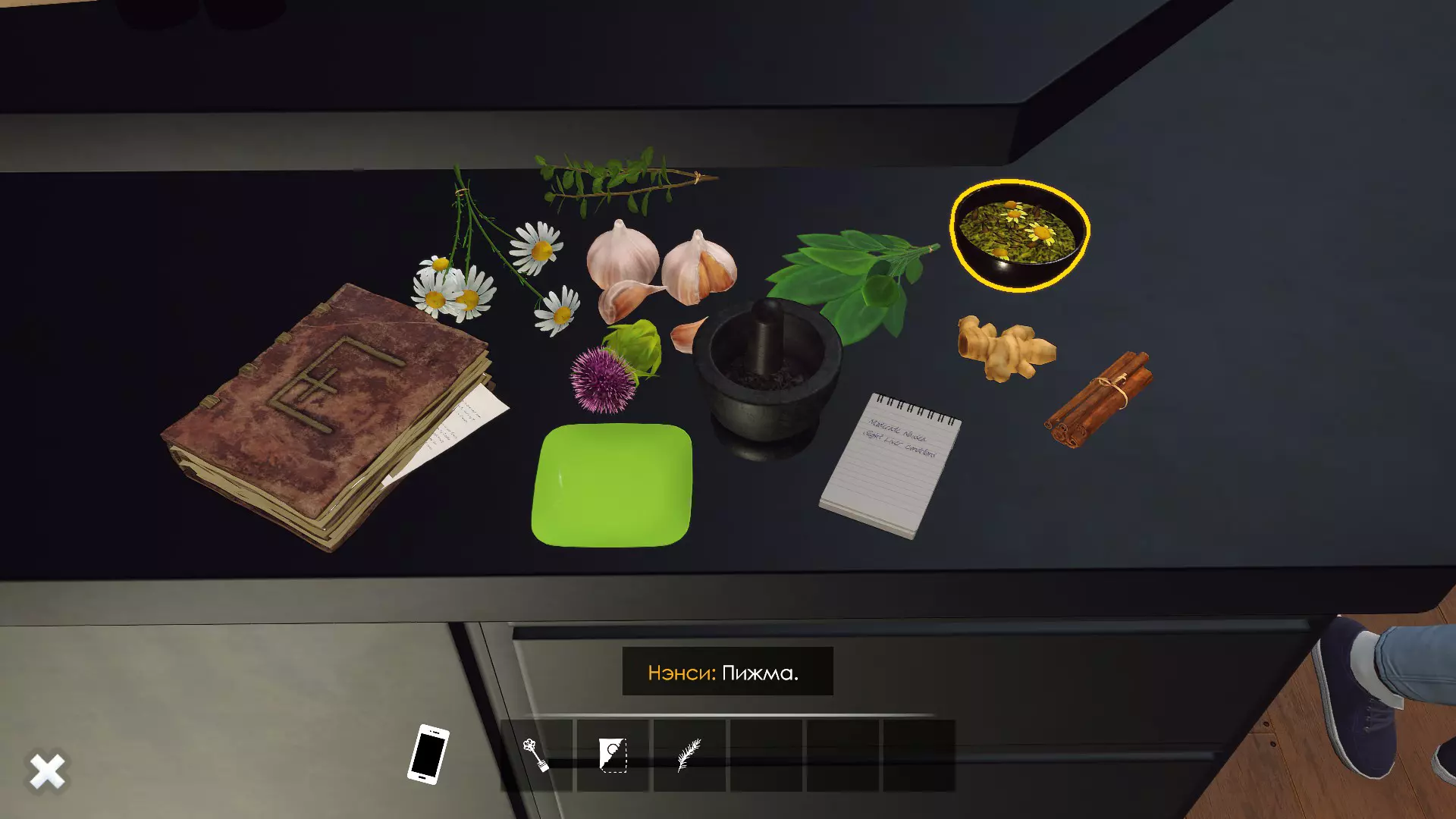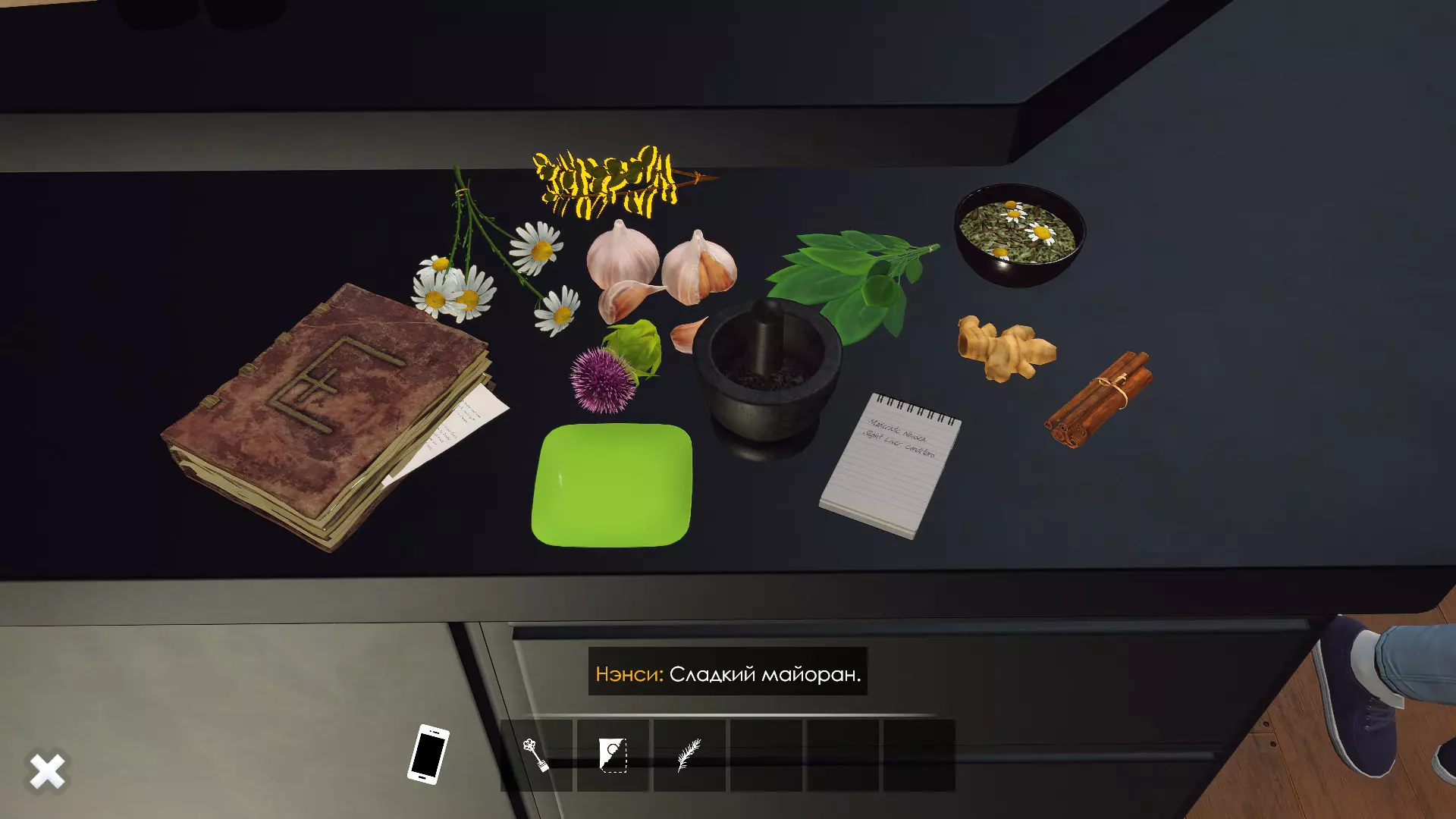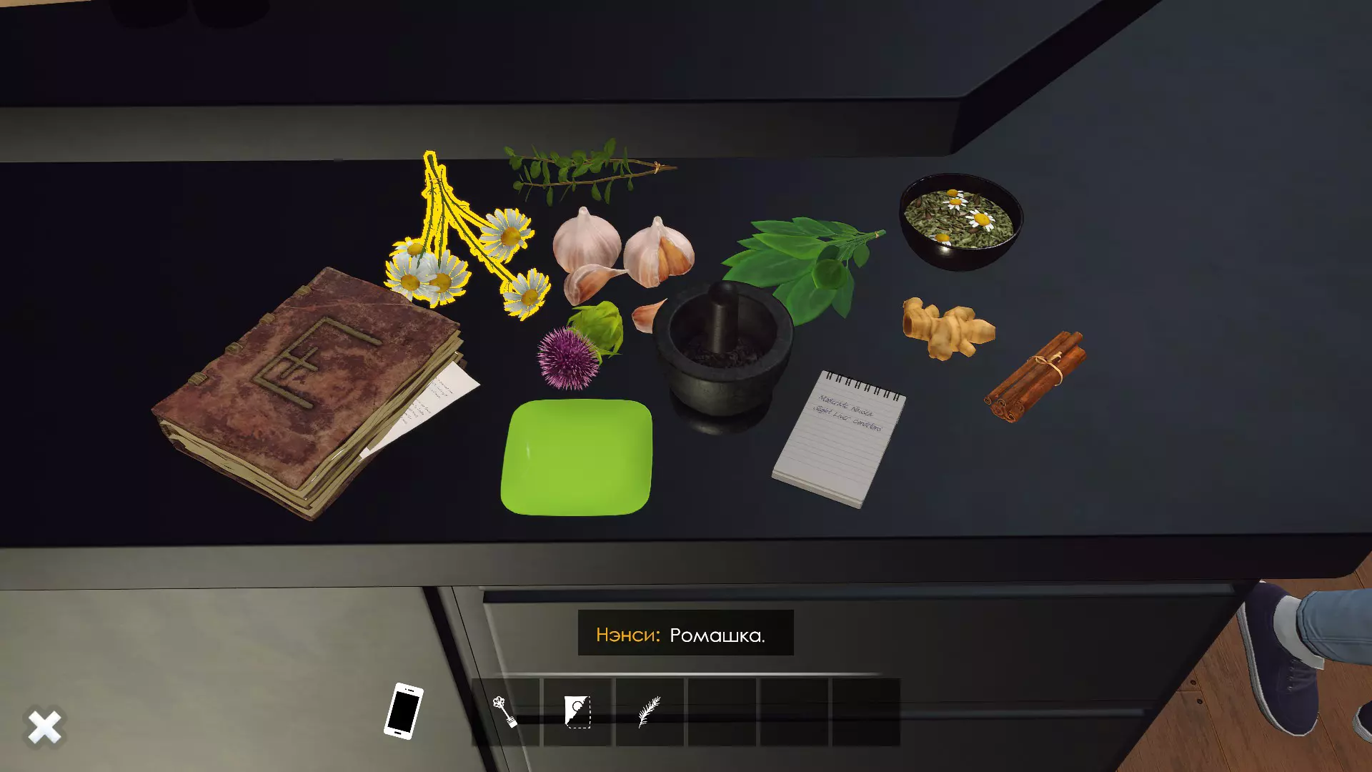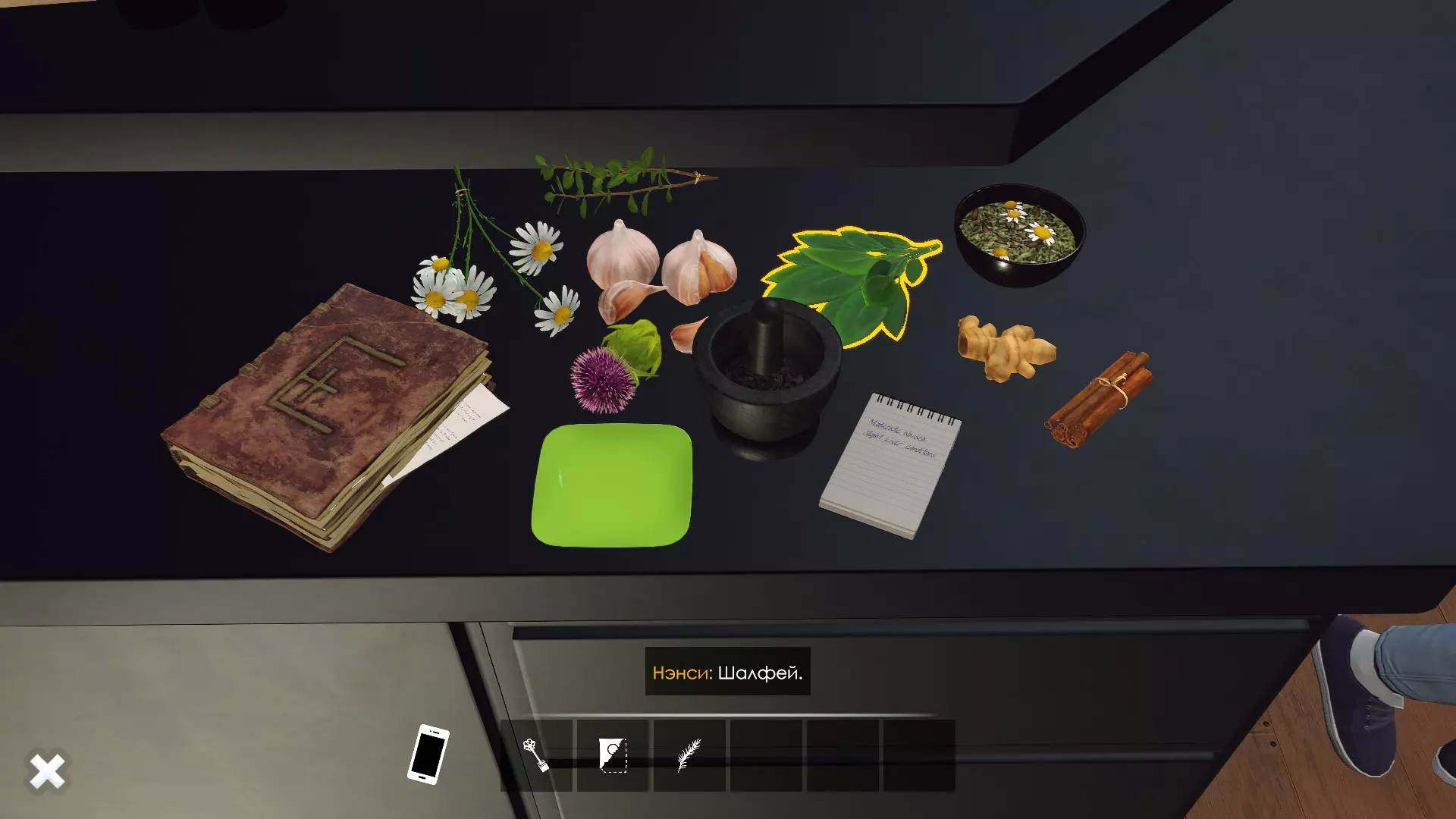 洛伦商店小游戏指南。俄语版《提图巴的魔法书:草药与技巧》。 草药指南 要开始制作草药混合物,需要注意以下几点。 首先,书中有关于Starwort(池塘水芹)的记录,但桌上没有这种草药。我不确定游戏中是否存在这种草药,至少我没遇到过。如果你碰巧找到了它,我认为处理它的方式应该和处理迷迭香一样。 其次,需要获取迷迭香,桌子上也没有。可以在前往哈托恩家的路上,在森林里的树下采摘它。