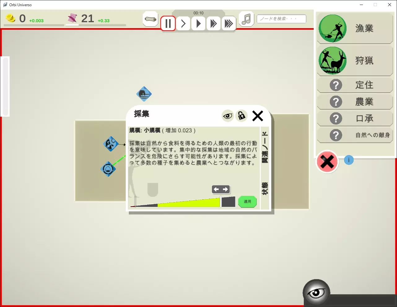 随着时间推移,食物会逐渐增加。这是因为杠杆需要时间才能调整到指定数值。 此外,通过放置或更改杠杆节点,新节点的提示也会增加。 食物增加会使人口增长,而人口增长又会需要更多的食物。请尽快增加食物供应。 资源保障 放置和更改杠杆需要消耗政治力和资金。如果这些资源不足,就很容易无法跟上局势的变化。将光标悬停在资源上时,会显示哪些节点正在生产和消费该资源,因此可以增加相应的节点。但要注意副作用:提高关税虽然能暂时增加收入,但会导致贸易减少。 此外,有些节点的配置需要大量资源。因此需要提高资源的最大值。 政治力可通过配置先进政治体制的节点来提升。 资金可通过配置货币、银行等金融相关的节点来增加。我个人希望能突出显示这类节点。 推进时代发展 进入青铜器时代后,会出现名为【安定度】的统计节点。 若不推进时代发展,提升安定度会比较困难。推进时代发展后,配置能够提升安定度的关键节点吧。 2.结语 这是一款探索节点条件、思考平衡很有趣的游戏,多说会涉及剧透,就先说到这里。