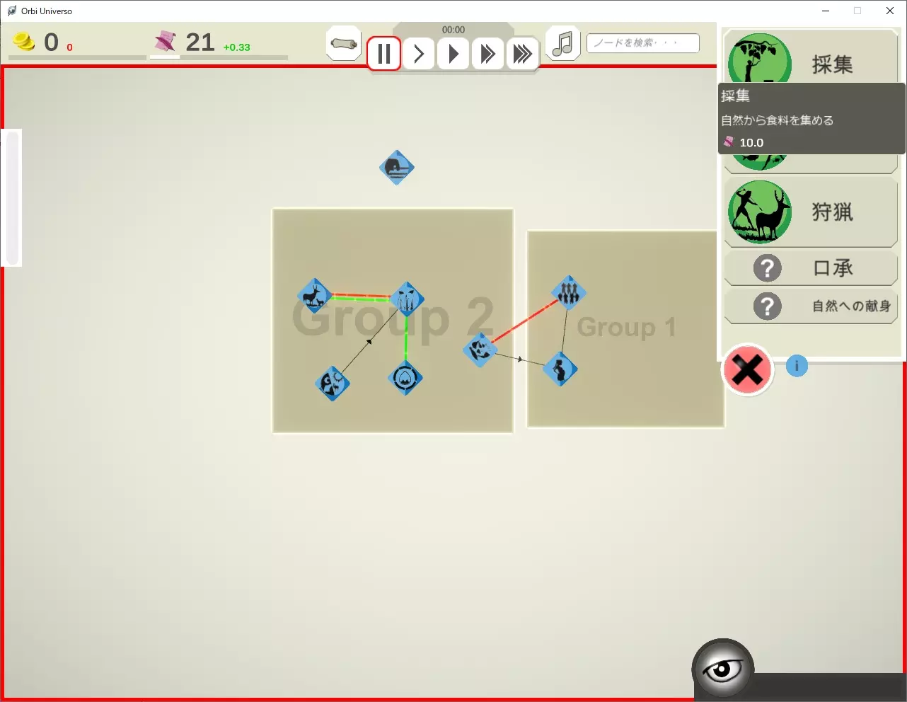拥有资源即可立即配置的拉杆会以图标显示。而条件未满足的拉杆则会显示为【?】。 1. 初期目标 游戏初期有三个目标: - 确保食物稳定供应 - 确保资源获取 - 提高稳定度 确保食物稳定供应:人口降为0时游戏结束。人口增长需要消耗食物。 可以尝试配置【采集】,然后让时间流逝。