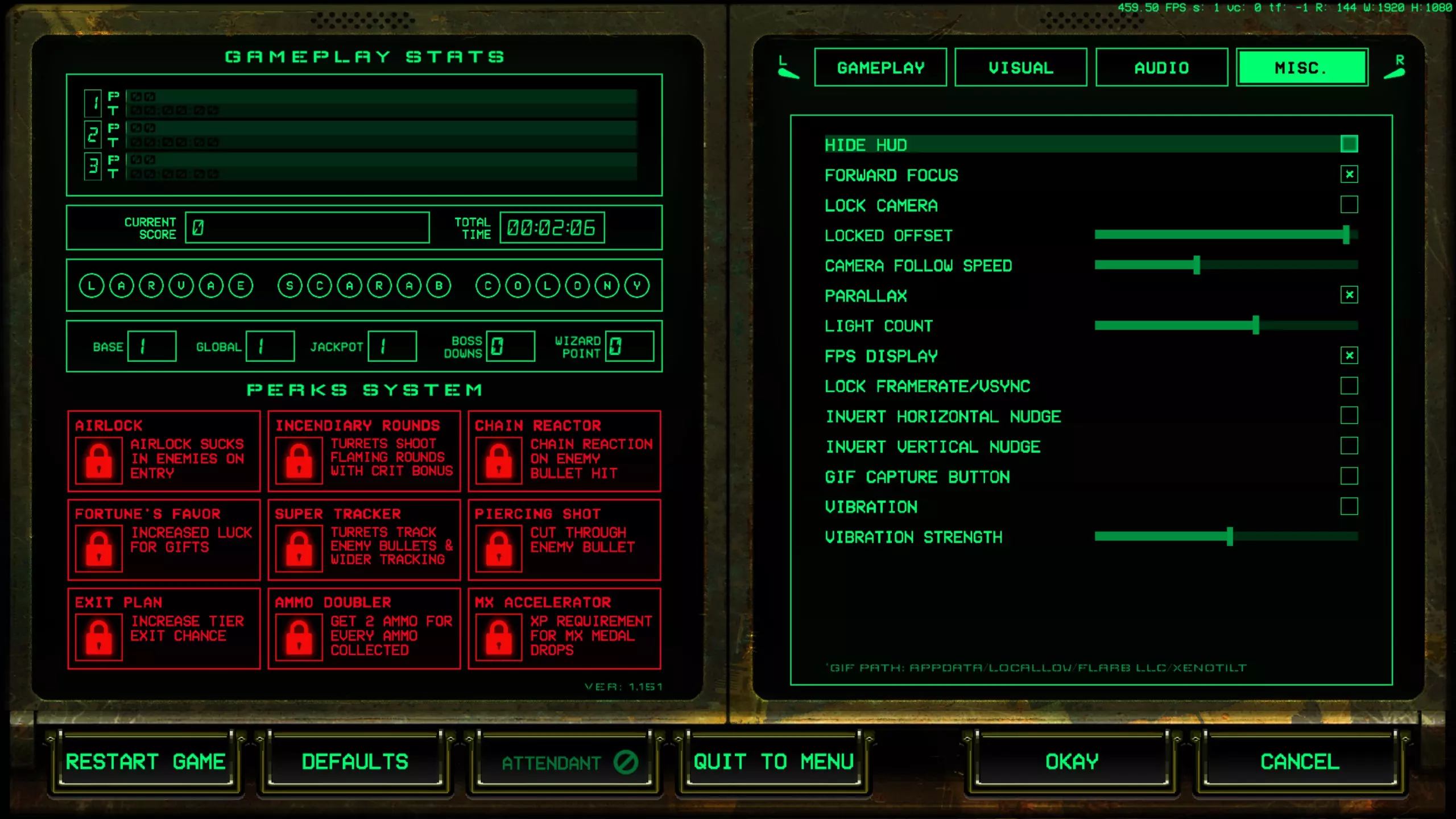 《XENOTILT》设有两个选项菜单入口,标题屏幕菜单可设置屏幕、方向等基础内容,还附带快速提示;游戏暂停菜单则包含玩法、视觉、音频、其他设置等多类选项,可对游戏操作、画面、音效等进行细致调整。