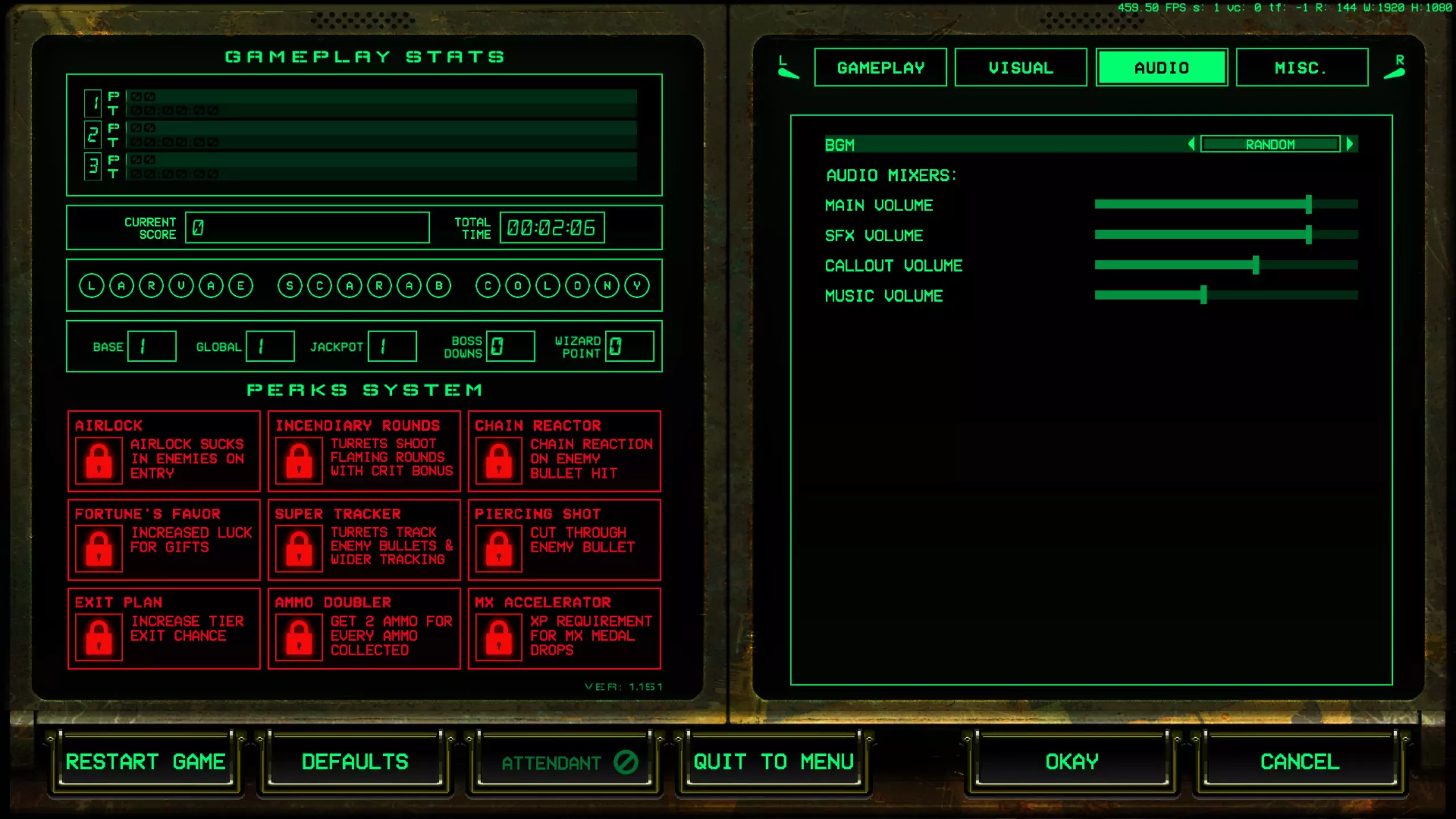 暂停菜单中的音频菜单