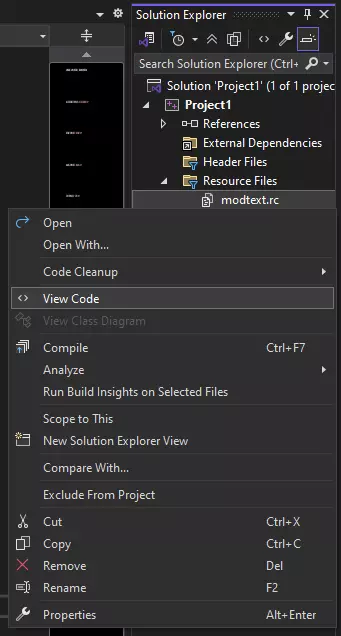 我建议将此文件简单命名为“modtext.rc”,并保存到容易访问的位置。 准备你的.RC文件: 创建好文件后,在使用Visual Studio前我们需要做一些调整。用你选择的文本编辑器(我推荐Notepad++)打开新建的.rc文件。你应该会看到类似以下内容: STRINGTABLE LANGUAGE LANG_ENGLISH, SUBLANG_ENGLISH_US { 34000, "Albatross" 34001, "Alb" 34002, "atross" 34003, "信天翁是一种凶狠的大鸟,会咬掉你的脚趾。" } 这应该与你在Resource Hacker中看到的内容相似,也非常接近我们需要的格式。不过,还需要做一些调整。首先,我们要让它包含一些系统文件。在文件顶部添加以下内容: #include <windows.现在我们需要对字符串表的声明方式进行一个小修改。由于数量太多,无法手动逐个处理,因此我们将使用大多数文本编辑器中通过Ctrl+H访问的“查找和替换”功能。在“查找”字段中输入STRINGTABLE,在“替换”字段中输入LANGUAGE 9, SUBLANG_DEFAULT。然后点击“全部替换”。接下来,重复此过程,在“查找”字段中输入LANGUAGE LANG_ENGLISH, SUBLANG_ENGLISH_US,在“替换”字段中输入STRINGTABLE。再次选择“全部替换”。你的文件现在应该看起来像这样: #include <windows.h> #include <commctrl.h> #include <richedit.h> #include <winresrc.LANGUAGE 9, SUBLANG_DEFAULT STRINGTABLE { 34000, "信天翁" 34001, "信天" 34002, "翁" 34003, "信天翁是一种体型庞大且凶狠的鸟类,会咬掉你的脚趾。" } 现在我们准备创建Visual Studio项目。 配置Visual Studio项目 创建项目: 此时你需要安装Visual Studio。在安装过程中,请确保选择标题为【使用C++的桌面开发】的工作负载。 现在,启动Visual Studio并按照指南创建一个新项目。为简单起见,建议再次将项目命名为ModText。请跳过创建新.rc文件的步骤,因为我们已经准备好了。确保按照步骤5中的链接说明如何指定/NOENTRY链接器选项。这一点非常重要,如果你不这样做,你的文件将无法正常运行。 编辑文本: 现在你已经创建了项目并添加了.rc文件,让我们查看一下以确保所有内容都正常。在解决方案资源管理器中右键点击你的文件,然后点击查看代码。