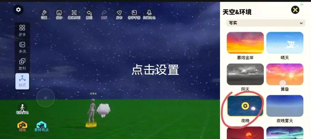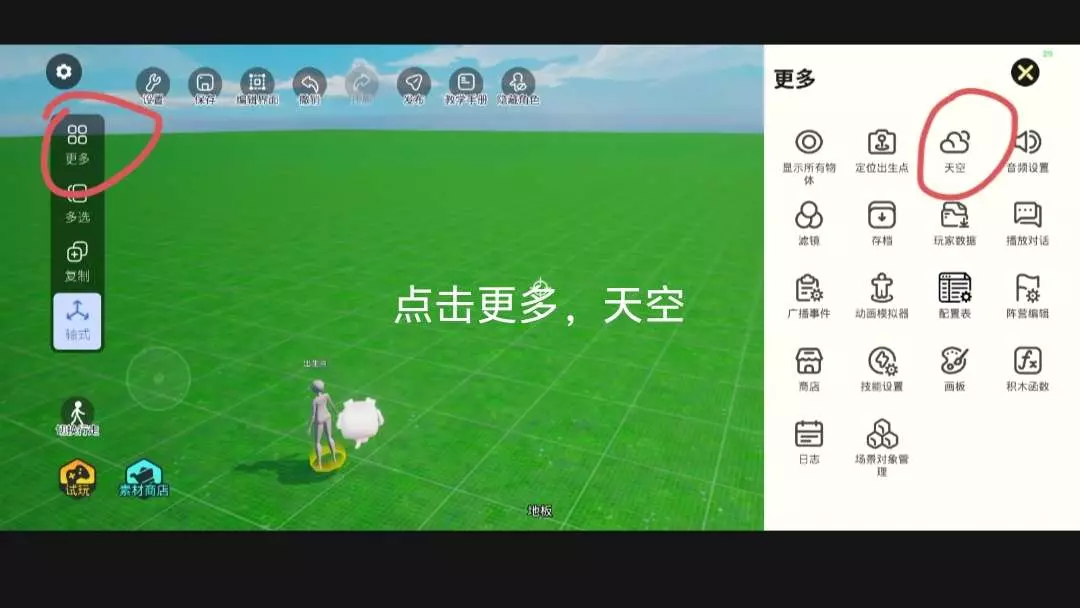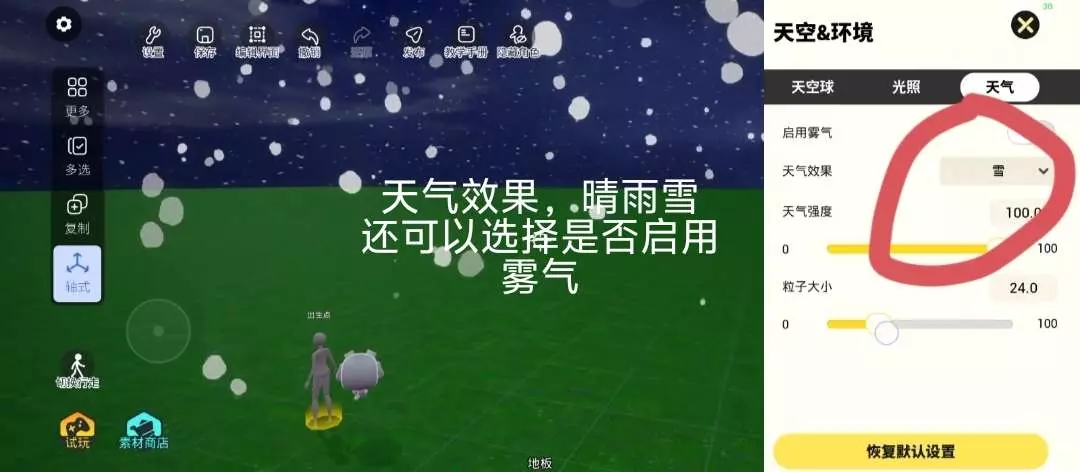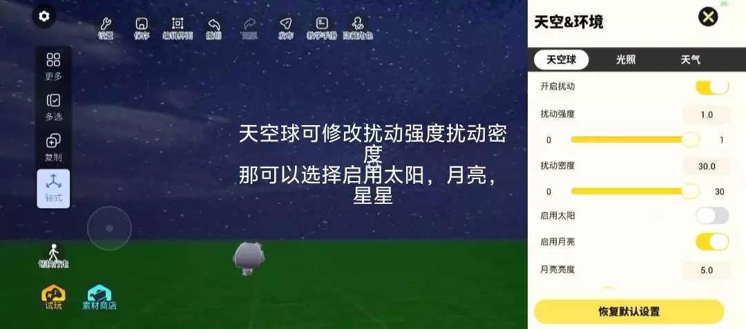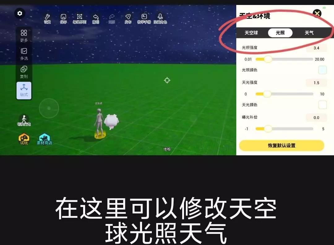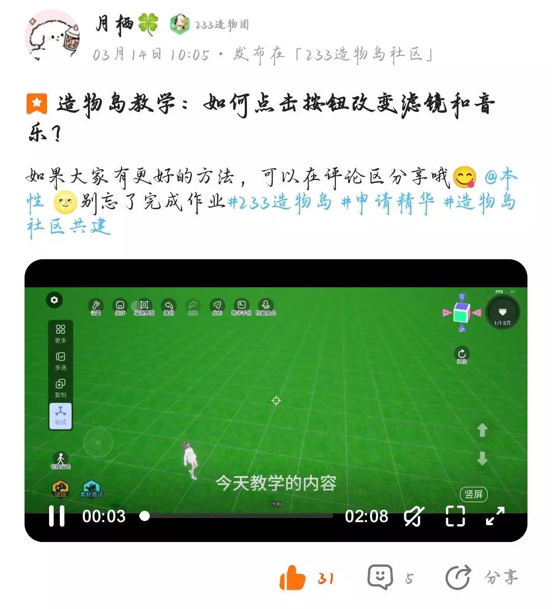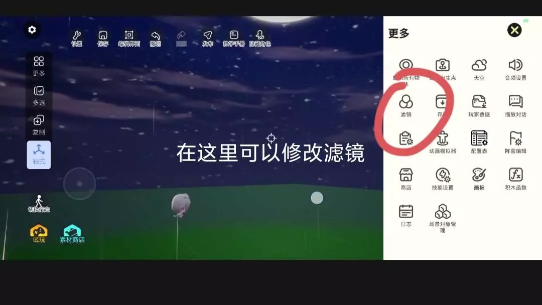 这是233造物岛的教学帖,展示了观赏地图的文字显示设置与天空滤镜调节操作,还提及可学习制作能改变滤镜和音乐的按钮,帮助用户掌握造物岛地图编辑技巧。